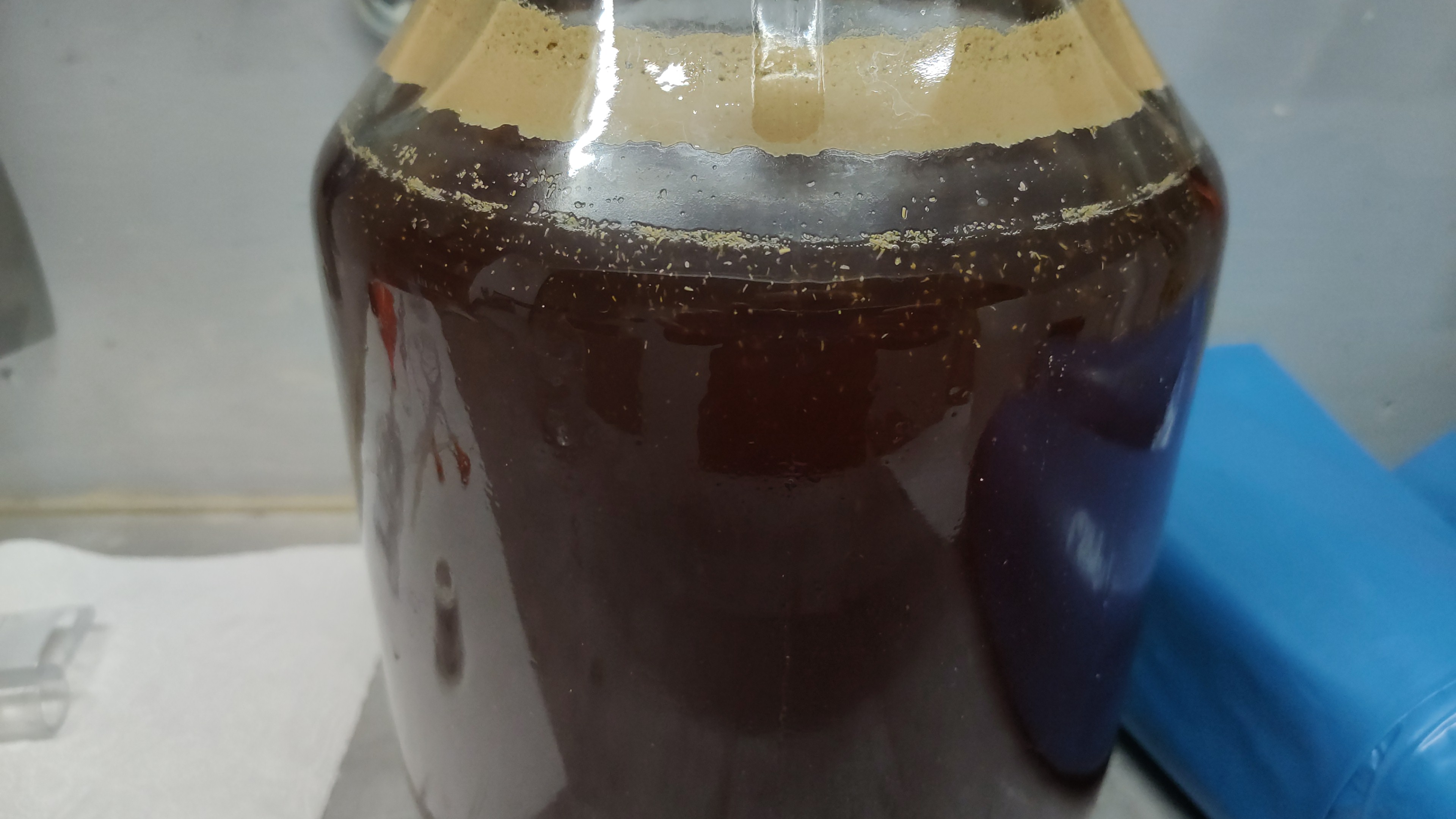Wollte mich hier mal mit einem Bild der Gärflasche anschließen. Bin etwas ratlos wonach ich suchen soll, Fehler haben wir beim Brauen sicher jede Menge gemacht. Da wir 10L Sud auf zwei solcher Gärflaschen aufgeteilt hatten und diese Schwebeteilchen nur in einer sind, bin ich auch unsicher ob weg schütten oder nicht. Hat jemand Rat was das ist?