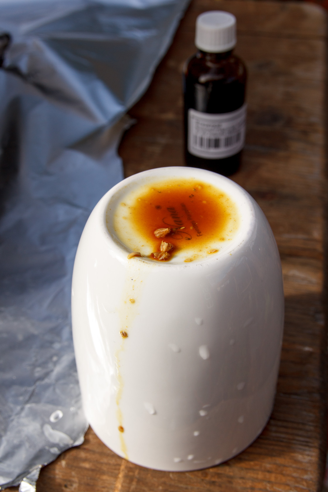 Ascorbinsäure (1,8 g) zum Ansäuern der Maische und Verhindern von Oxidation, war ein Experiment. Der pH-Wert war allerdings durch die Menge schon unter 5,2 abgesackt, also ein bisschen zu viel des Guten.