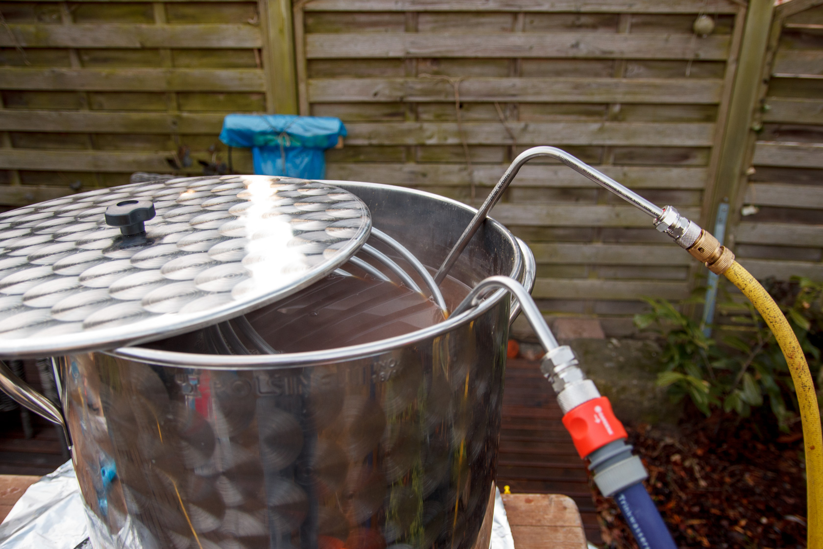 Würzekühlen, hat ca 5 Minuten unter 80°C gebraucht, nach einer halben Stunde waren es ca. 13°C