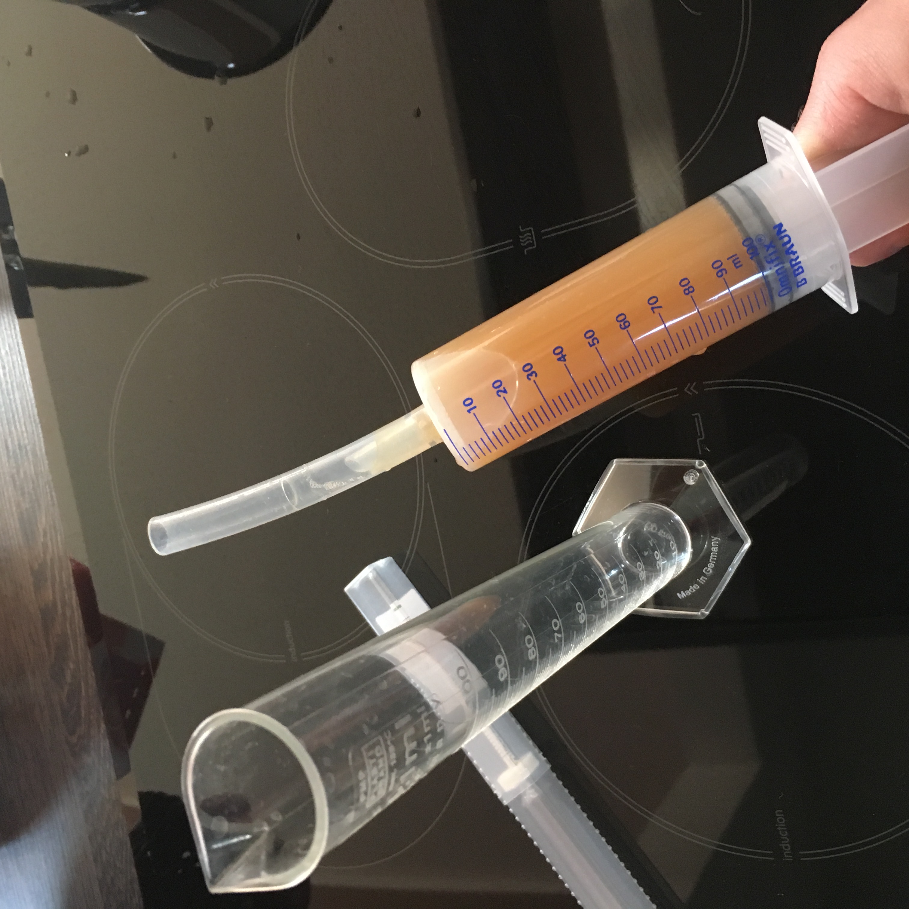 Topkarsten hat geschrieben:Die Spritze und der Silikonschlauch wurden abgekocht und die Spindel inklusive Zylinder würden lange genug stehen gelassen bzw in Rotation versetzt.