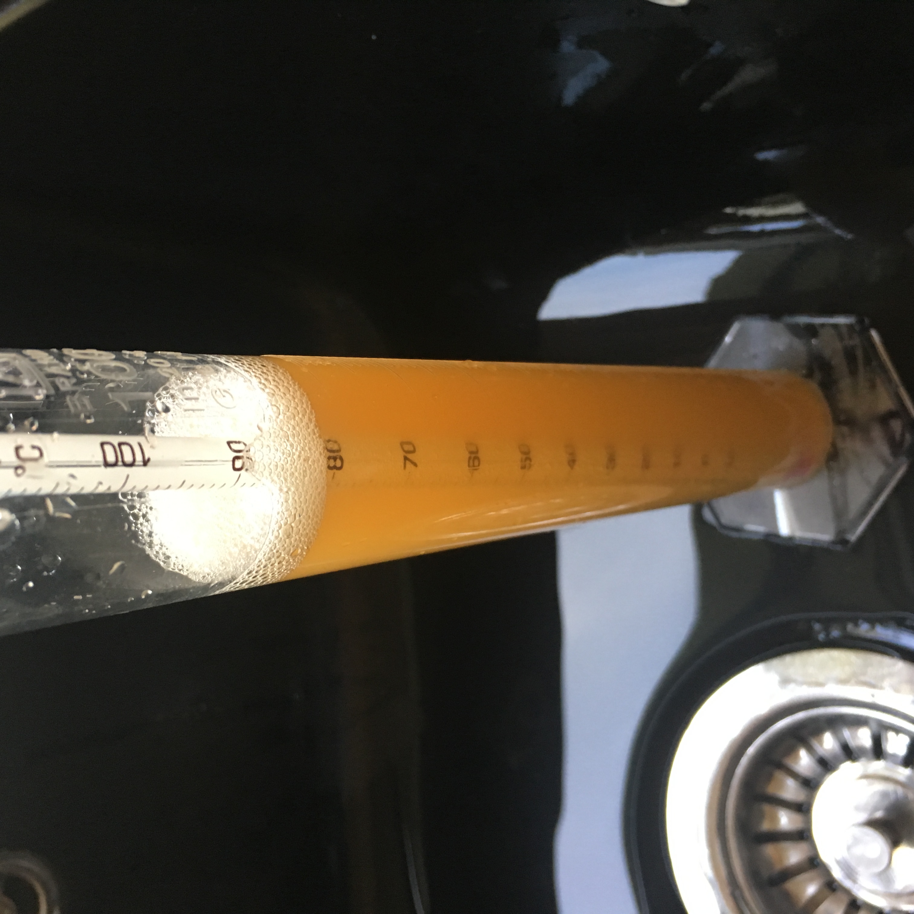 Rasten und rühren für 90 Minuten. Ich habe mit einem zweiten Thermometer den Sud regelmäßig überprüft und war angenehm überrascht von der nahezu identischen Temperatur.