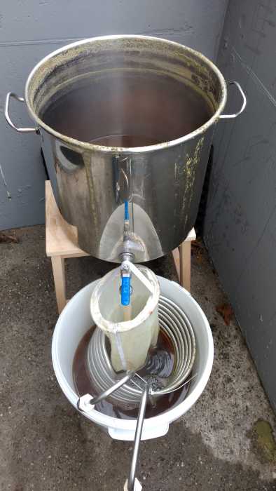 Mit der Erntehefe aus dem Vorgängersud anfangs bei 9°C vergoren und nach einer Woche sukzessive bis 18°C hochgegangen (7,4 Brix, sEVG=84%, 7,9 %Vol., nicht schlecht!). Nach 14 Tagen Cold Crash.