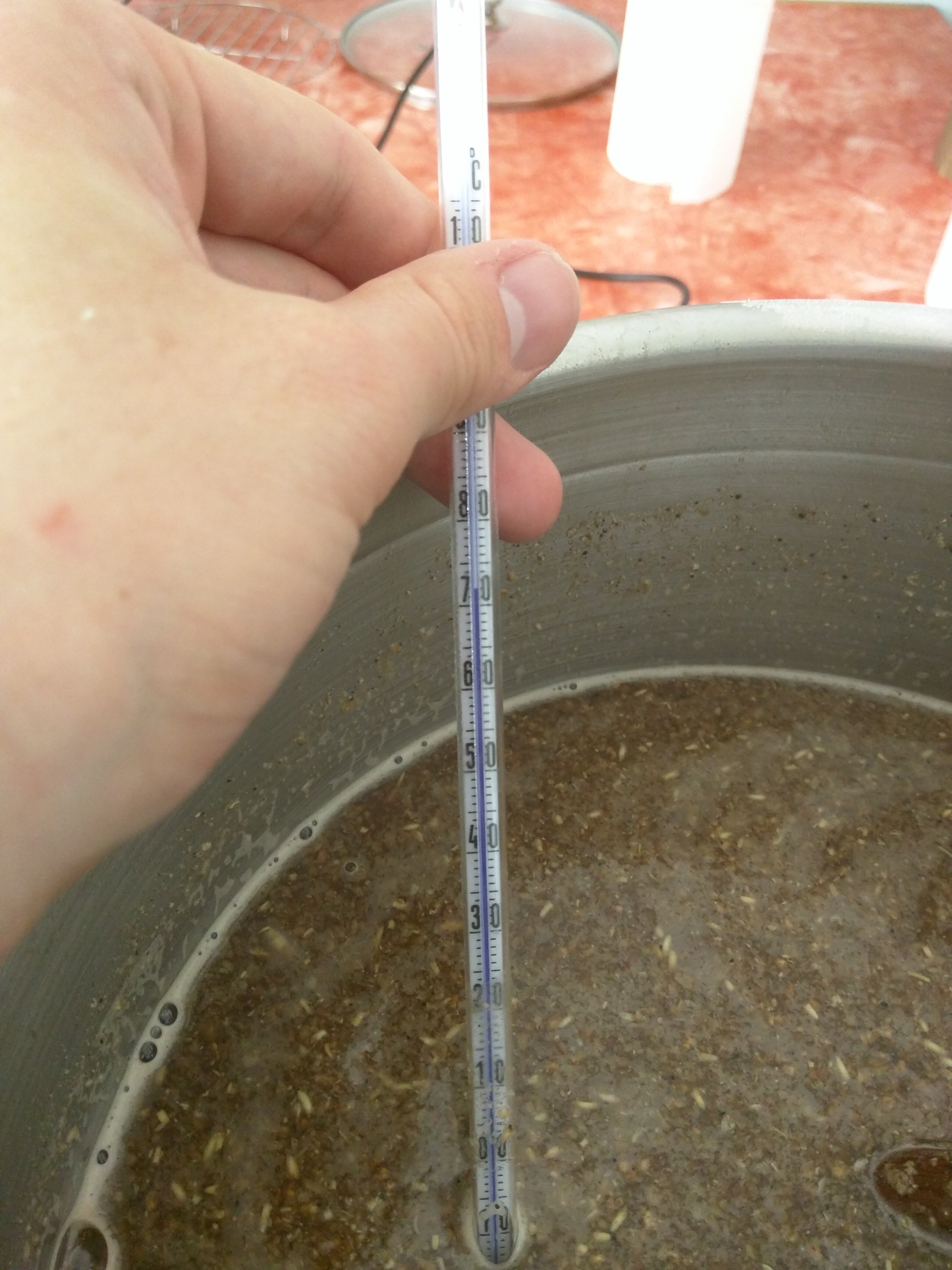 Wie schön, der Topf ist randvoll und die Würze hat 11.2 Brix, genau wie gwünscht