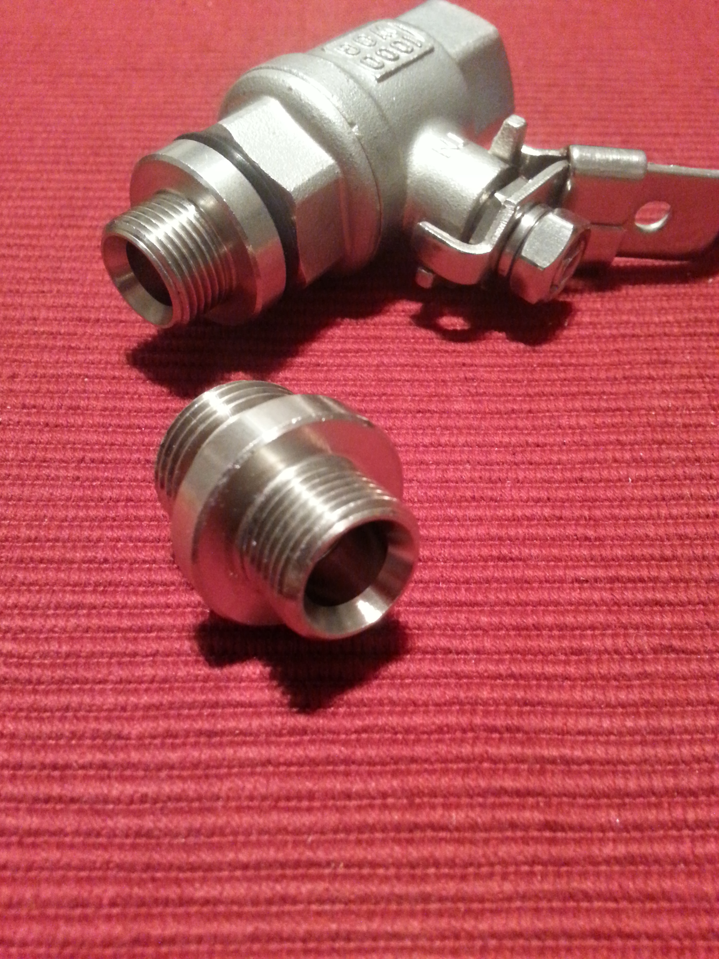 So was hier zum Beispiel. Die Gewinde sind nicht konisch, genau wie bei dem Messingteil und man hat genug Anpressfläche für die Dichtung.