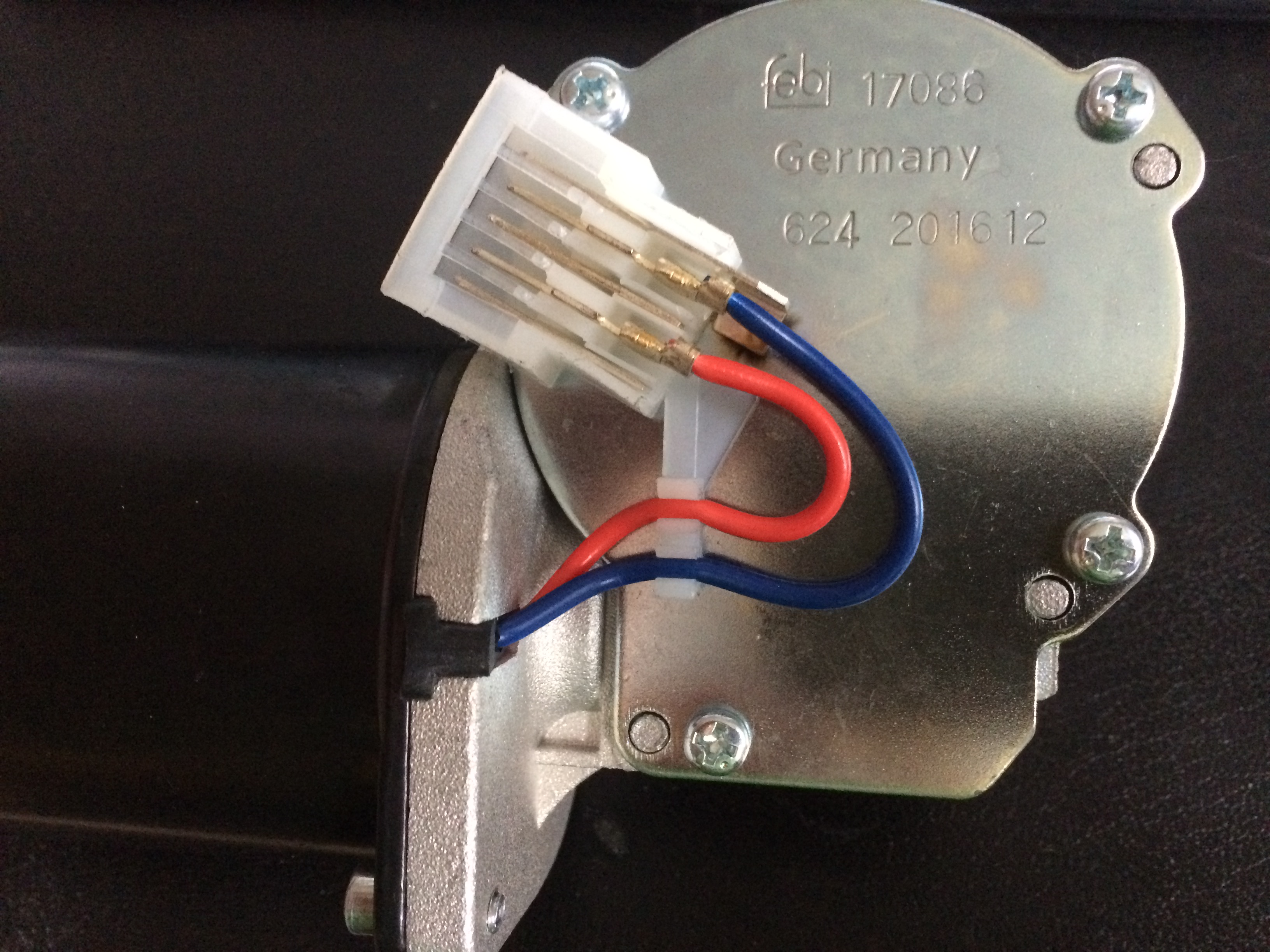 Ich habe mir einen Wischermotor gekauft mit exakt dem selben Stecker wie oben abgebildet. Ich möchte den Motor an eine Autobatterie anklemmen.