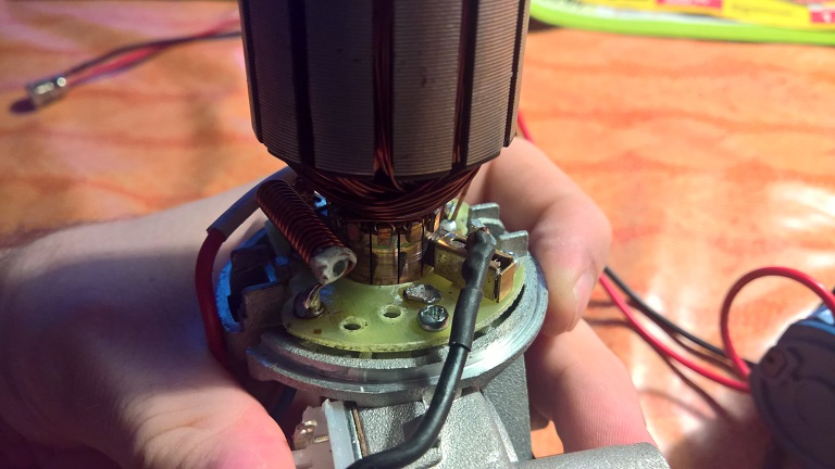 Um das Problem mit der Potentialdifferenz zwischen Motor und Induktionsplatte in den Griff zu bekommen, kann die elektrische Verbindung zwischen Motorgehäuses und den Spannungsführenden Teilen relativ einfach getrennt werden. Jedenfalls ging das bei meinem. Man muss dann allerdings neue Kabel an die Platine mit den Kohlen löten. Ich kann morgen Abend mal Fotos dazu machen.