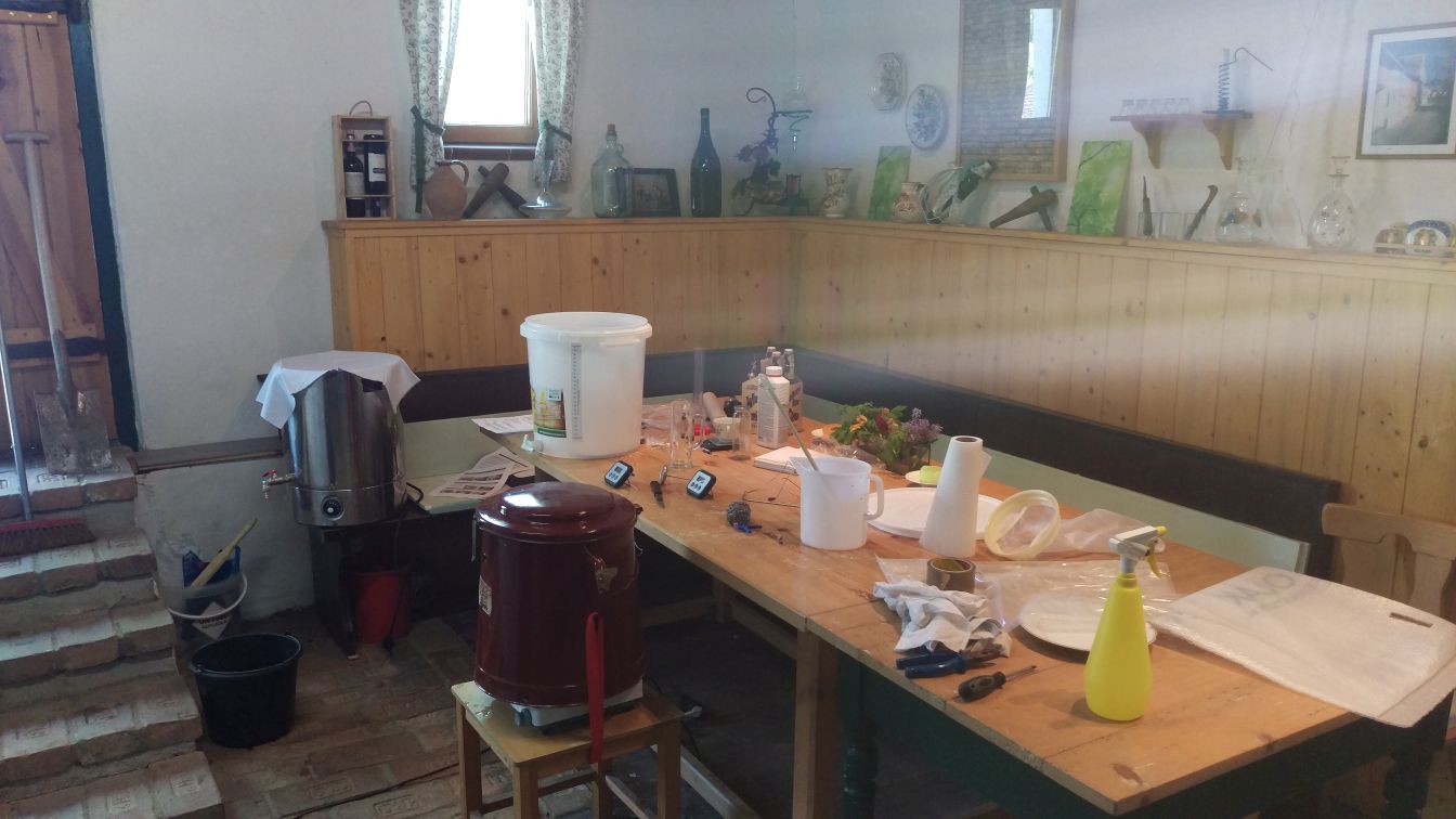Neue Heizspirale ist bestellt, Flaschen zu abfüllen werden gerade organisiert, dabei auch erfahren das meine Tante auch einen 30 Liter Edelstahltopf auf ihrem Wirtshaus benutzt!
