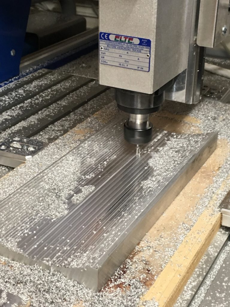 Ich habe eine Aluminium Flachstange (ebay) exakt auf die Oberfläche des BrewBuckets fräsen lassen, um eine plane Oberfläche für die Montage der Peltier-Elemente (12709, 90W) zu haben, welche mit CPU-Kühlern mit Lüftern gekühlt werden.