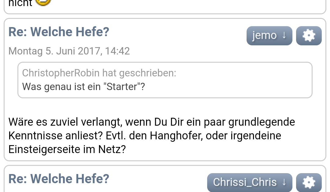 Seid einiger Zeit verfolge ich nun schon einige Beiträge auf dieser Seite. Habe mit den Informationen meine ersten Biere gebraut.