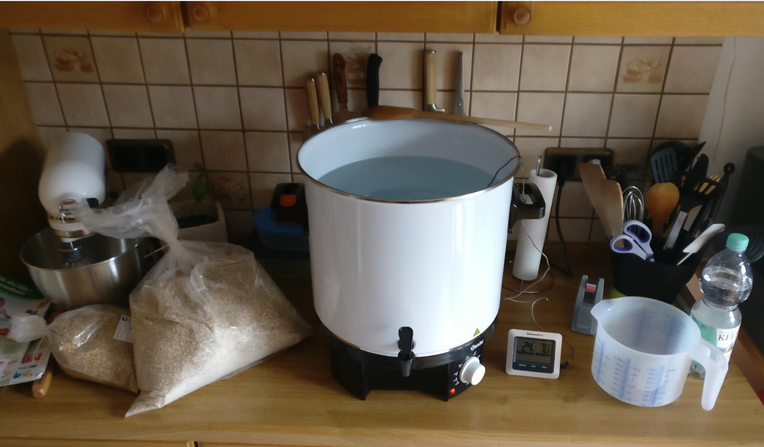Nachdem ich dann auf 70° geheizt habe, wurde eingemaischt! Wie in der Anleitung beschrieben fiel die Temperatur auf die besagten 67°C. Diese Temperatur konnte ich dann auch ohne Probleme 90 Minuten lang halten: