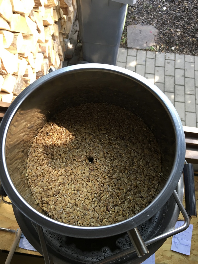 So bin ich heute um 06:30 aufgestanden, um endlich den neuen BM 10 einzuweihen. Gereinigt hatte ich ihn bereits am Vorabend, das Malz war ebenfalls schon abgewogen.