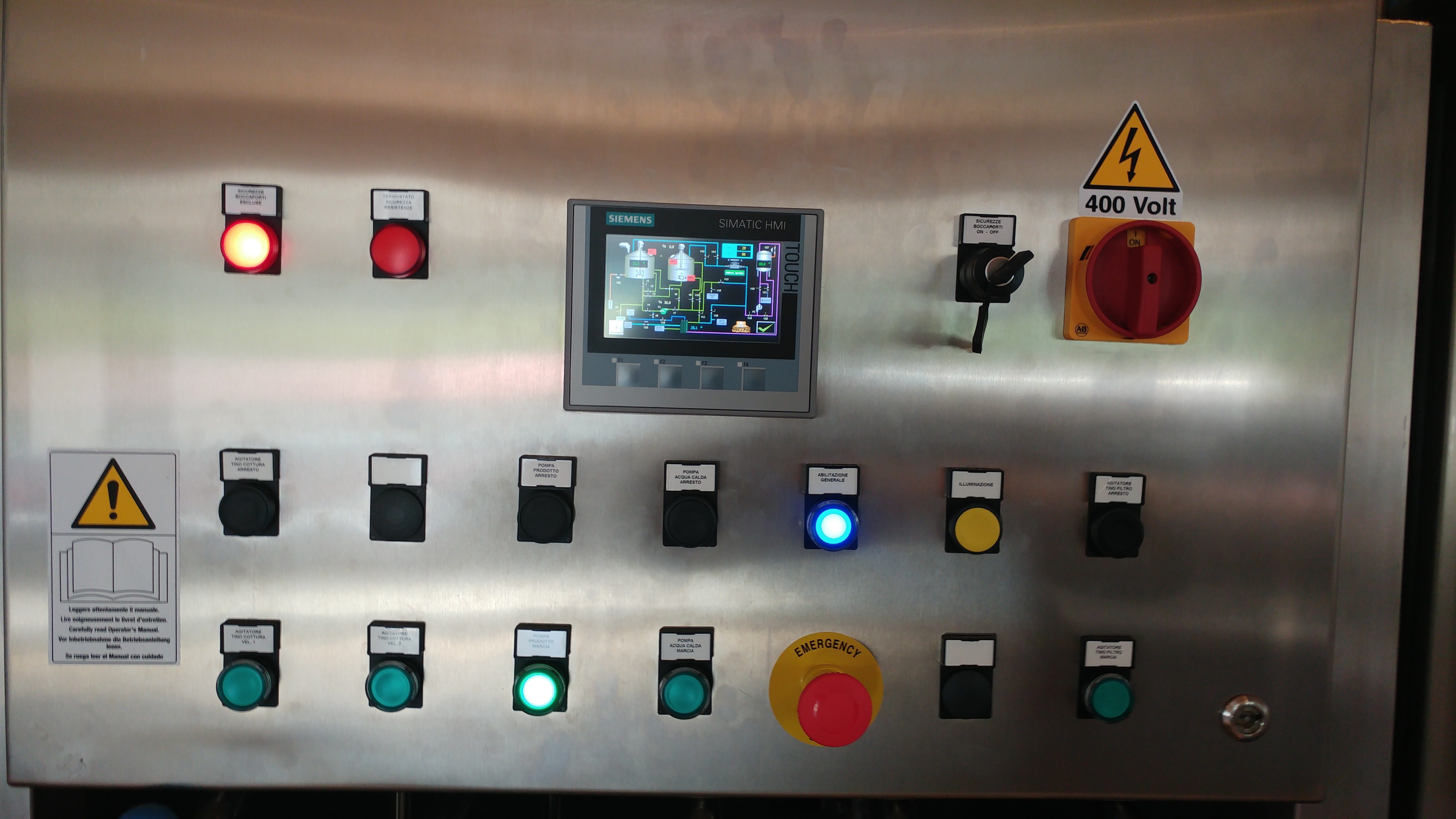 Das Maischeautomatik hat dann die Arbeit übernommen und wir konnten gepflegt Frühstücken gehen. Gesteuert wird die Anlage über ein kleines Touchpanel - ich nehme an Siemens Logo.