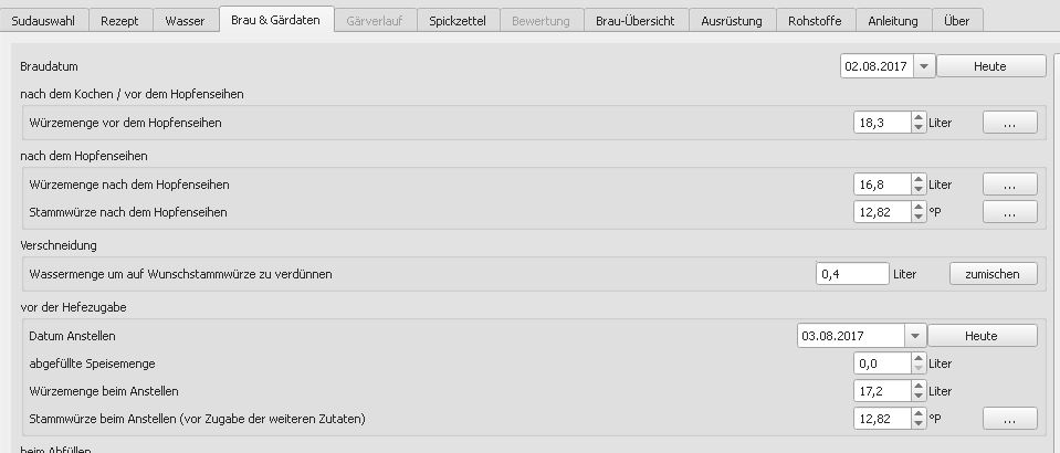 Aus 14 und 13 Litern wurden laut Brauhelfer 16 und 12,88Liter