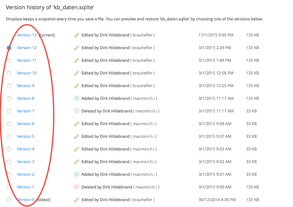 - eine Datenbankdatei auswählen von der du sicher bist das es noch ging.