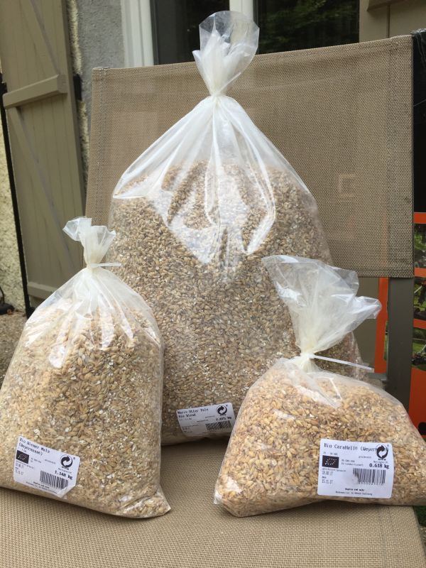 Auf geht's. Mangels Mühle kommt das Malz schon geschrotet.