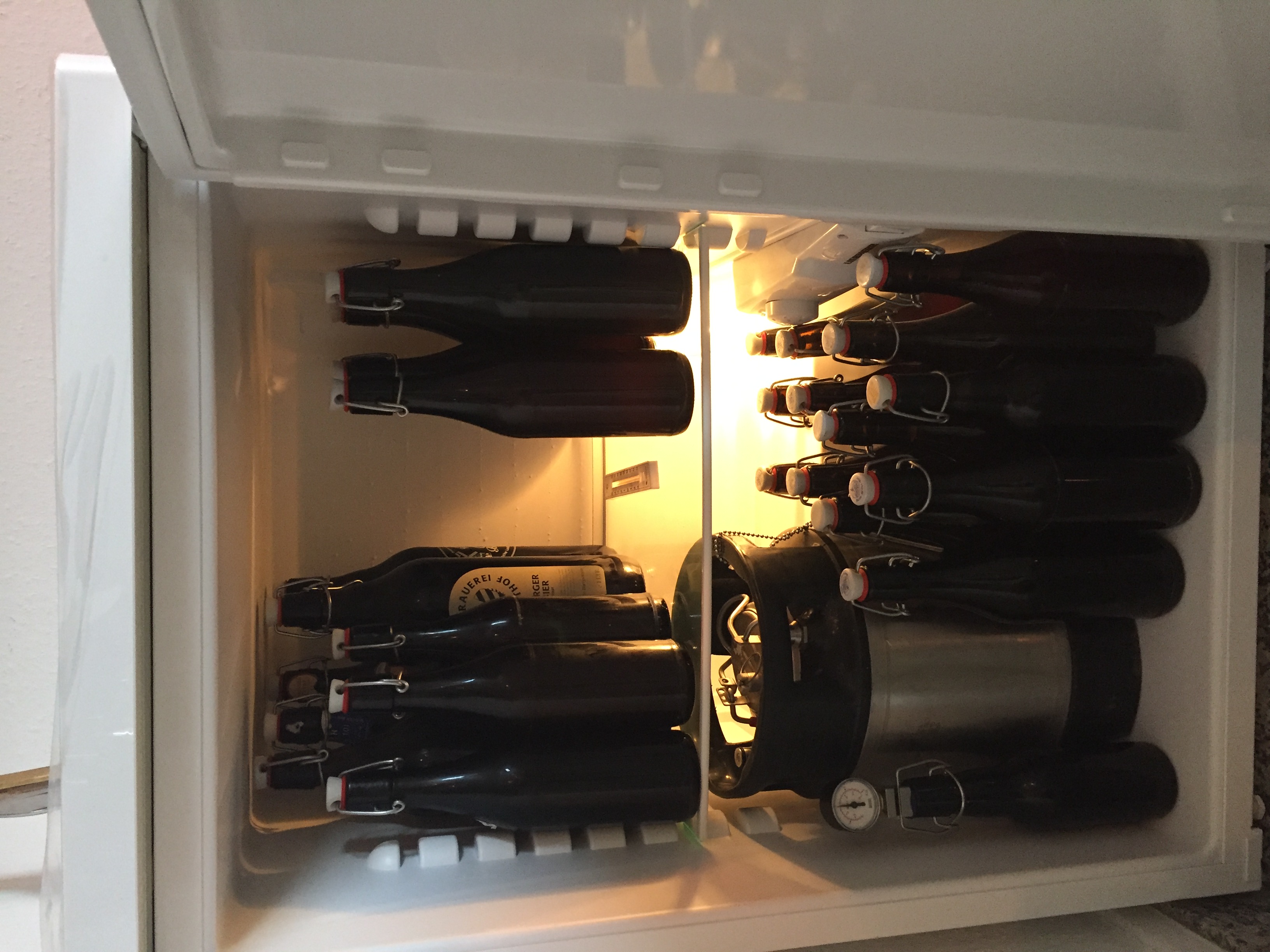 Es soll ein kleiner Reifekühlschrank für 0,5l-Plopp-Flaschen werden. Maximale Höhe 86cm und am Besten Platz für ca. 60 Flaschen (3 Kästen) [minimal jedoch 2 Kästen]. Soll wie gesagt lediglich zum Reifen eingesetzt werden, muss also kein Gärbottich für ein Untergäriges reinpassen können.