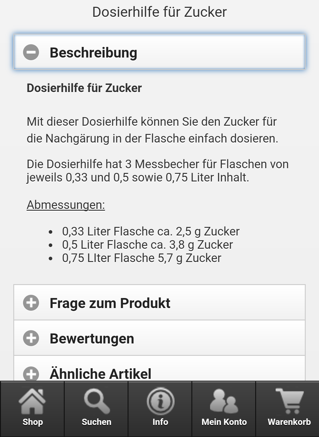 Vergiss mal ganz schnell zu genaue Werte einhalten oder erreichen zu wollen bzw. zu müssen. Ob du jetzt mit 3,8g oder 4,0g Zucker pro Flasche arbeitest wirst du nicht rausschmecken. Genauso wenig musst du deine Schüttungsanteile aufs Gramm genau abwiegen. Auch das macht keinen schmeckbaren Unterschied. Ich arbeite seit je her mit der Dosierhilfe und bin damit absolut zufrieden, passt alles wunderbar. Für ein Weizen nimmst du einfach den nächst größeren Löffel oder für lacke, engliche Brühe den nächst kleineren.matduc hat geschrieben: Montag 11. September 2017, 13:36 okda wurde der Ingenieur in mir enttarnt :D