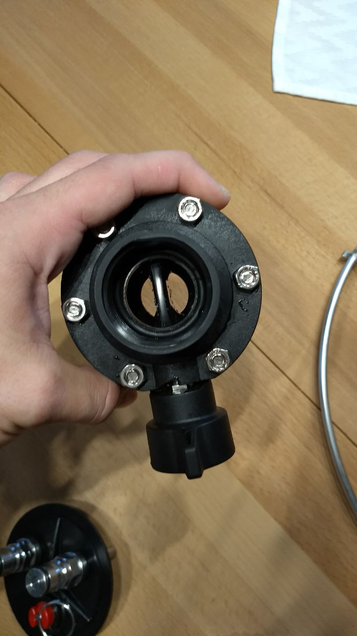 In ihm enthalten sind ein Deckel mit NC-Ventilen und ein Getränkeschlauch, der an einer kleinen Boje befestigt wird, wodurch man immer direkt an der Oberfläche das Bier über den NC-Bierausgang abzapfen kann. Nachdem dann alles zusammengesetzt war, machte ich mich gleich an den Drucktest.