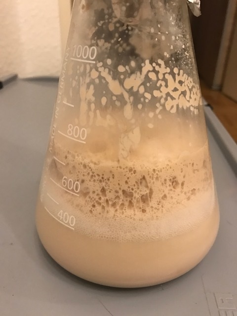 Die Würze habe ich dann auf ca. 20° runter gekühlt, dann mit dem Starter zusammen in den Kühlschrank verfrachtet, weiter runter gekühlt und am nächsten morgen den Starter gepitcht, die Würze hatte 12°C, der Starter 10°. Belüftet habe ich händisch mit dem Schneebesen, wie ich es immer mache.