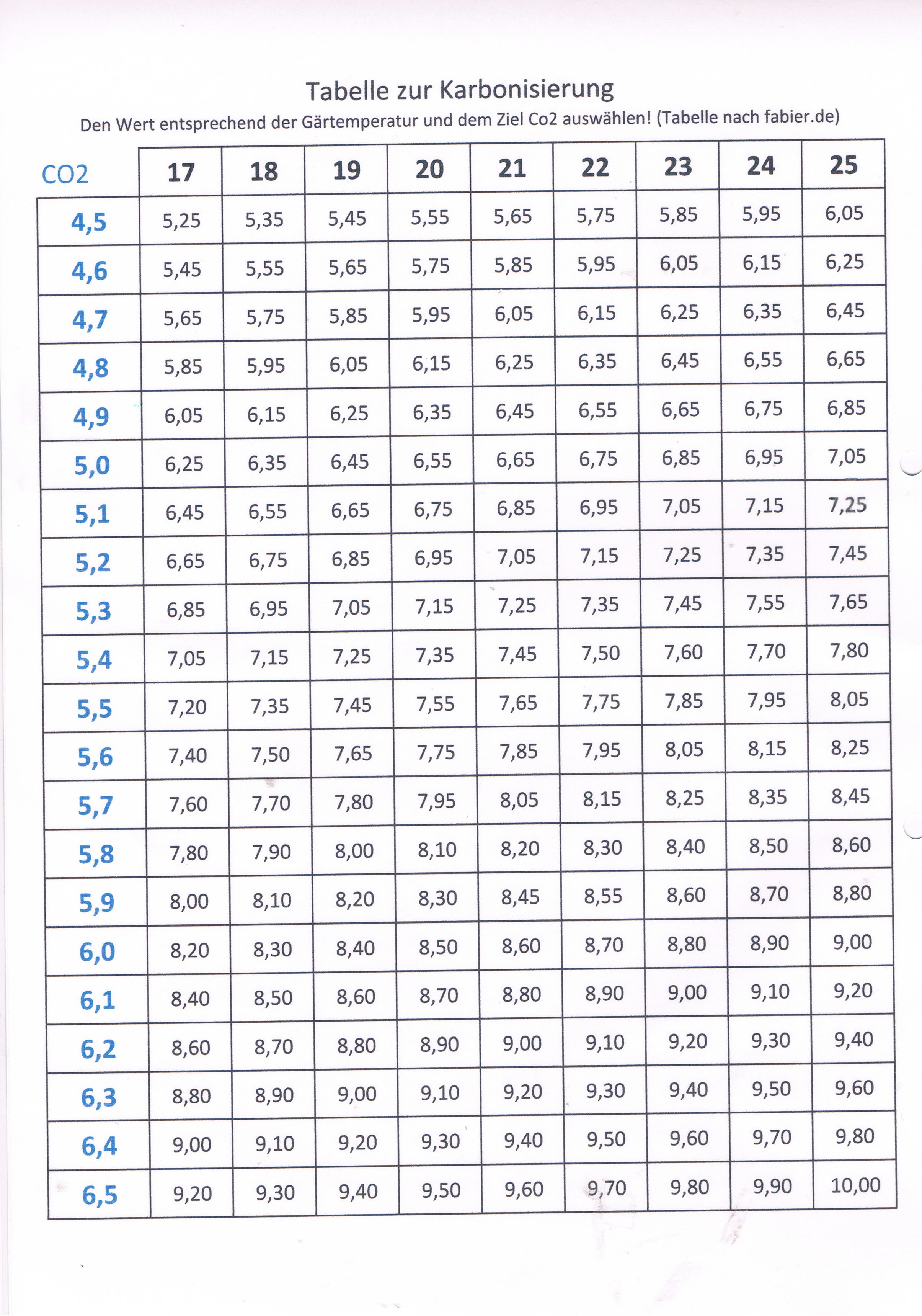 2. Dann schaust Du, wie viel Co2 Dein Bier haben soll, Beispiel: 5,5 Gramm / Liter]