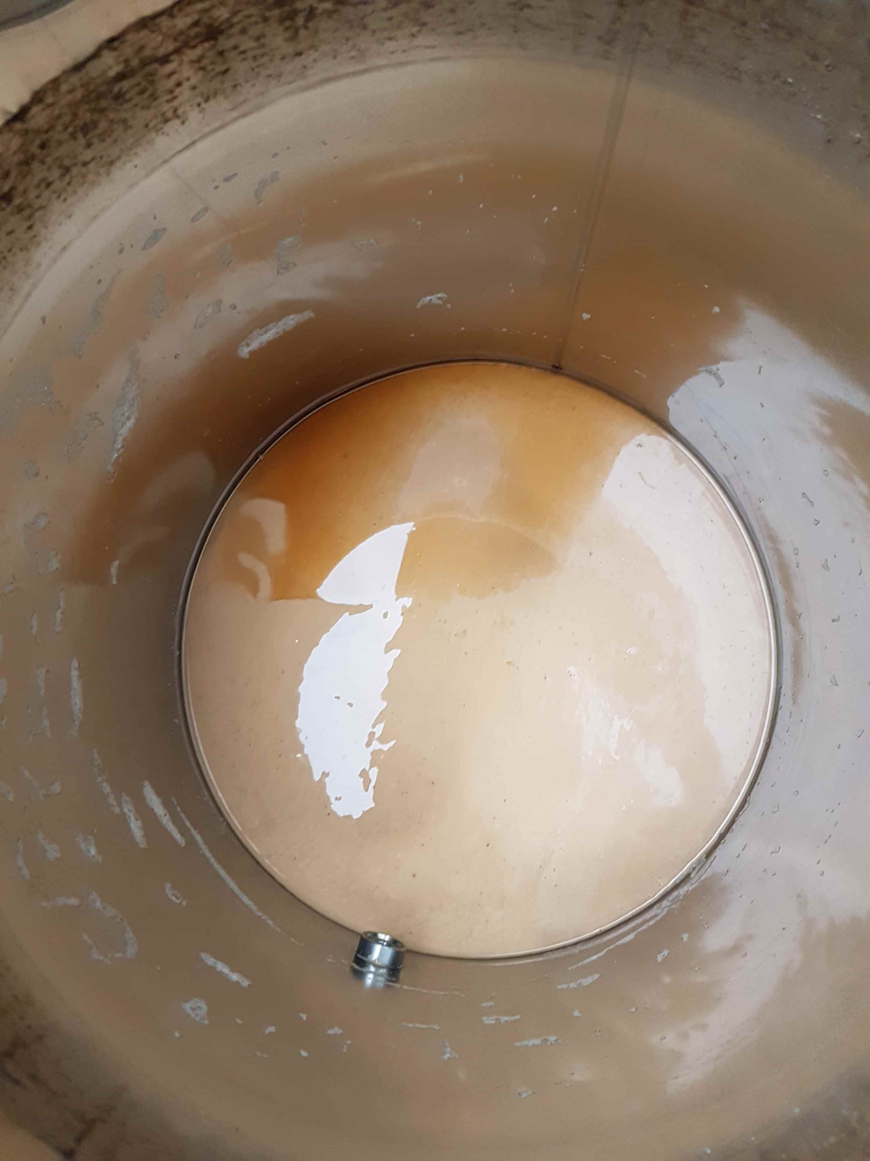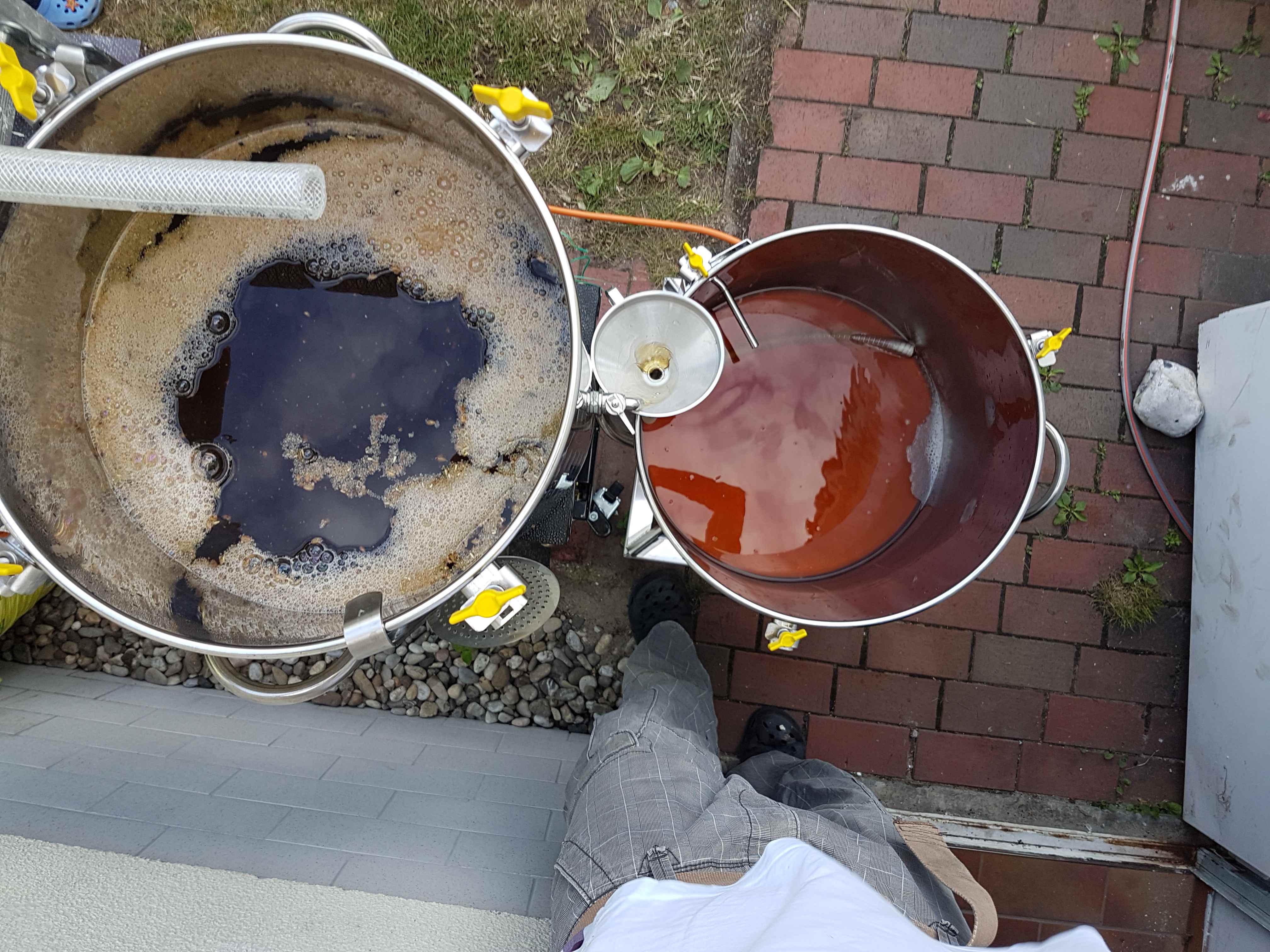 Der Treber sah gut aus. Zuvor hatte ich immer einen Läuterboden, bei dem ich den Zwischenraum mit temperiertem Wasser aufgefüllt habe. Das hat natürlich immer eine gewissen Verdünnung bewirkt - ist zwar alles machbar und lässt sich berücksichtigen, aber es beibt eine Verdünnung.