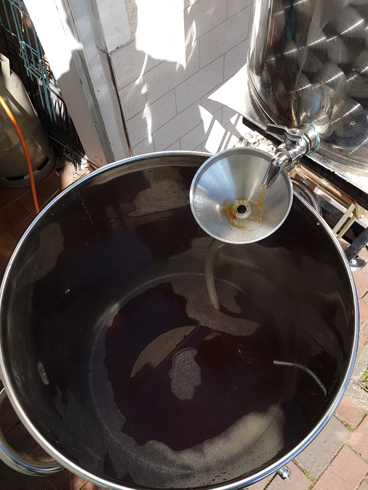 Dann wie immer: Sud kochen, abkühlen mit dem Würzekühler, ablassen durch den Filter und los mit der Gärung: