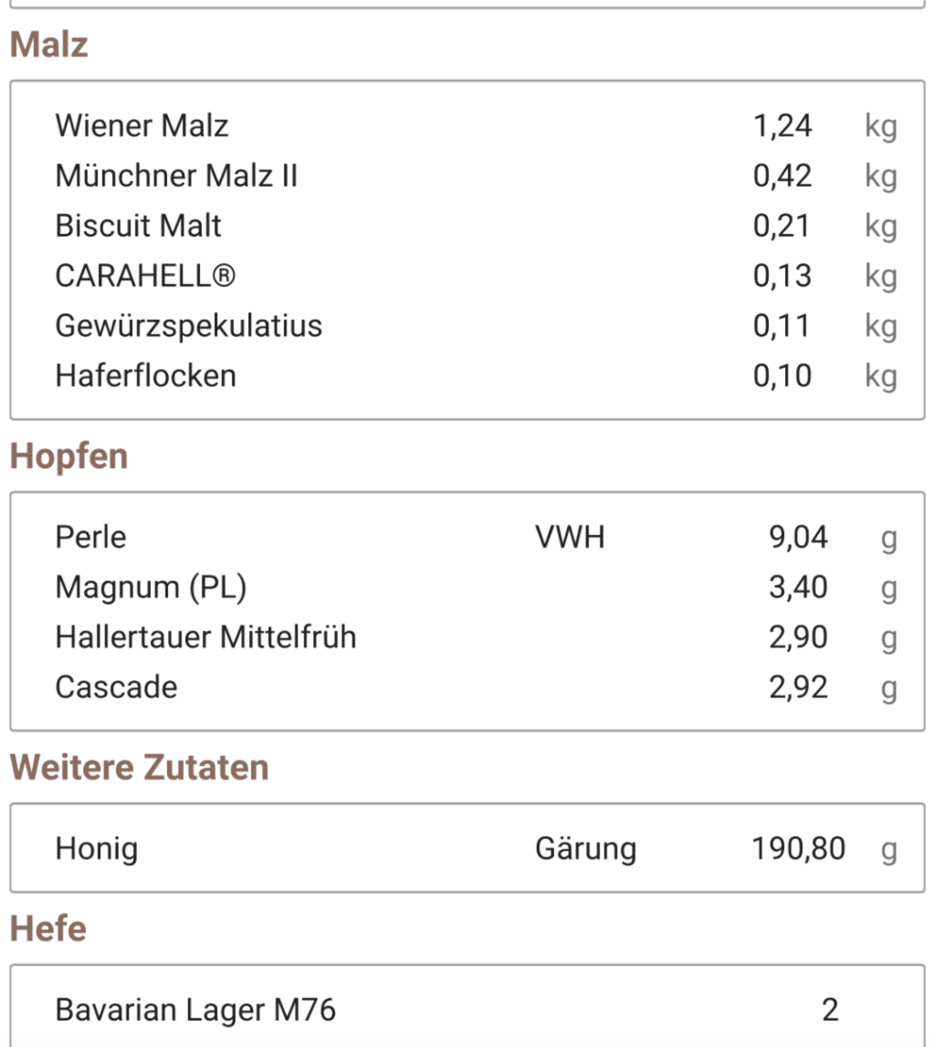 Allerdings ist da die Honigwassermischung von 250g Honig und 0,75l Wasser nicht bei der Stammwürze mit drin.