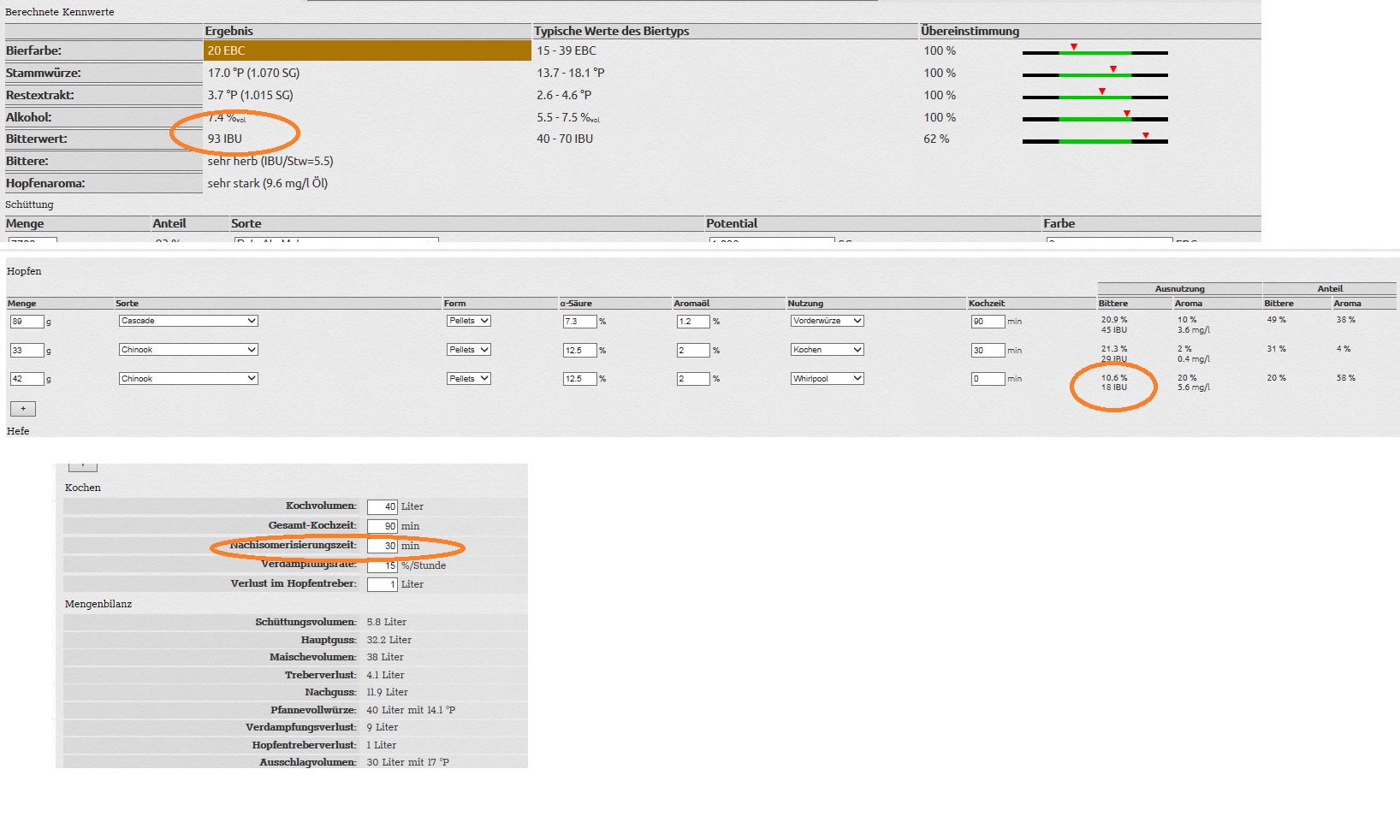 Und was mache ich nun? Ich stehe irgendwie völlig auf dem Schlauch. Möchte ja gern die angestrebten 60 IBU haben, habe aber Angst am Ende doch eher um die 100 IBU oder sogar mehr und somit ein total überbittertes IPA zu machen.