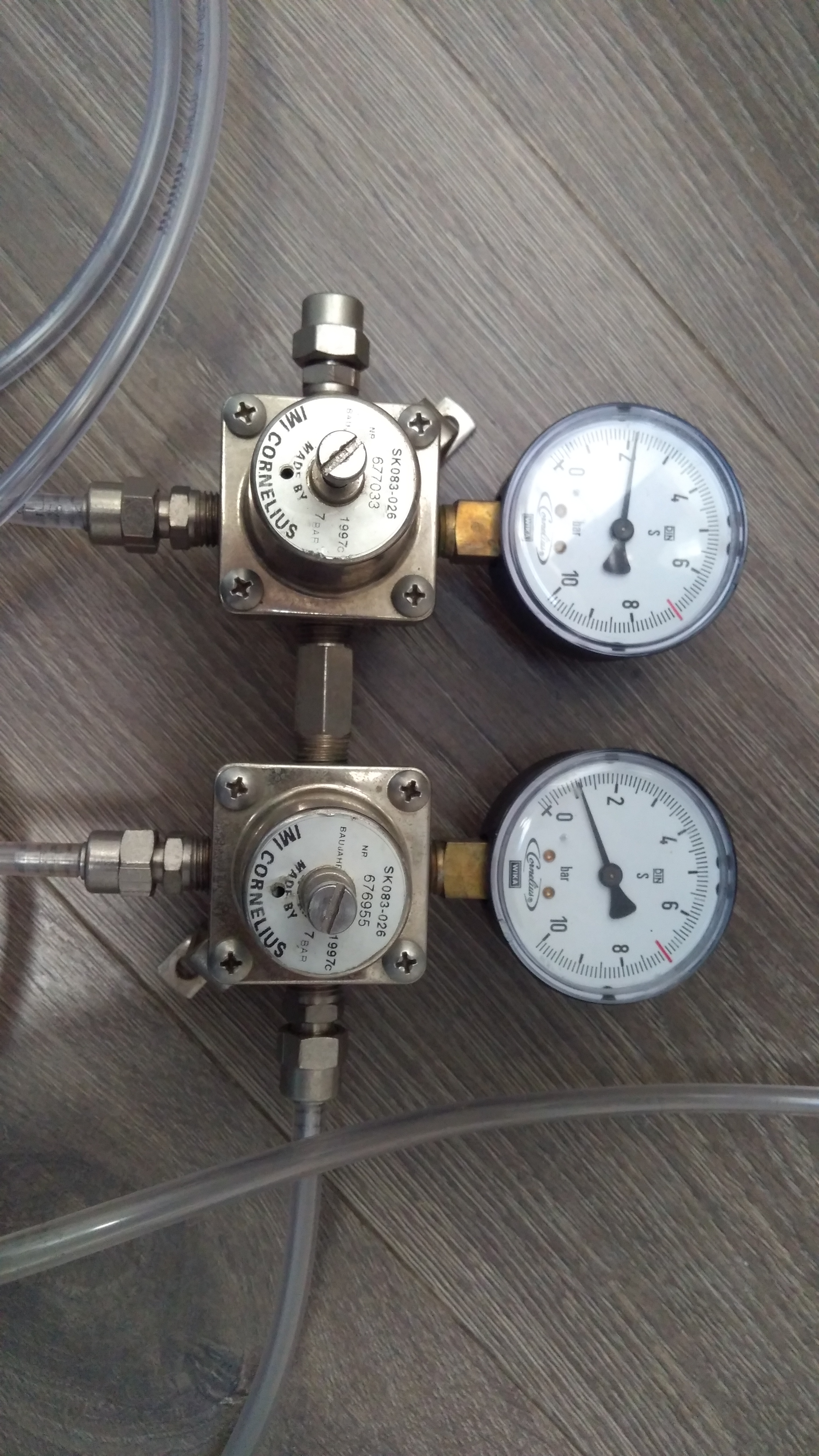 Ich habe bei eBay den unten zu sehenden Zwischendruckregler ergattert. Irgendwie bin ich mir jedoch über den Aufbau nicht ganz im Klaren. Vorallem das untere Element verwirrt. Kann mir jmd den Anschluss erläutern? Es sollen 2 kegs mit unterschiedlichem Druck versorgt werden.