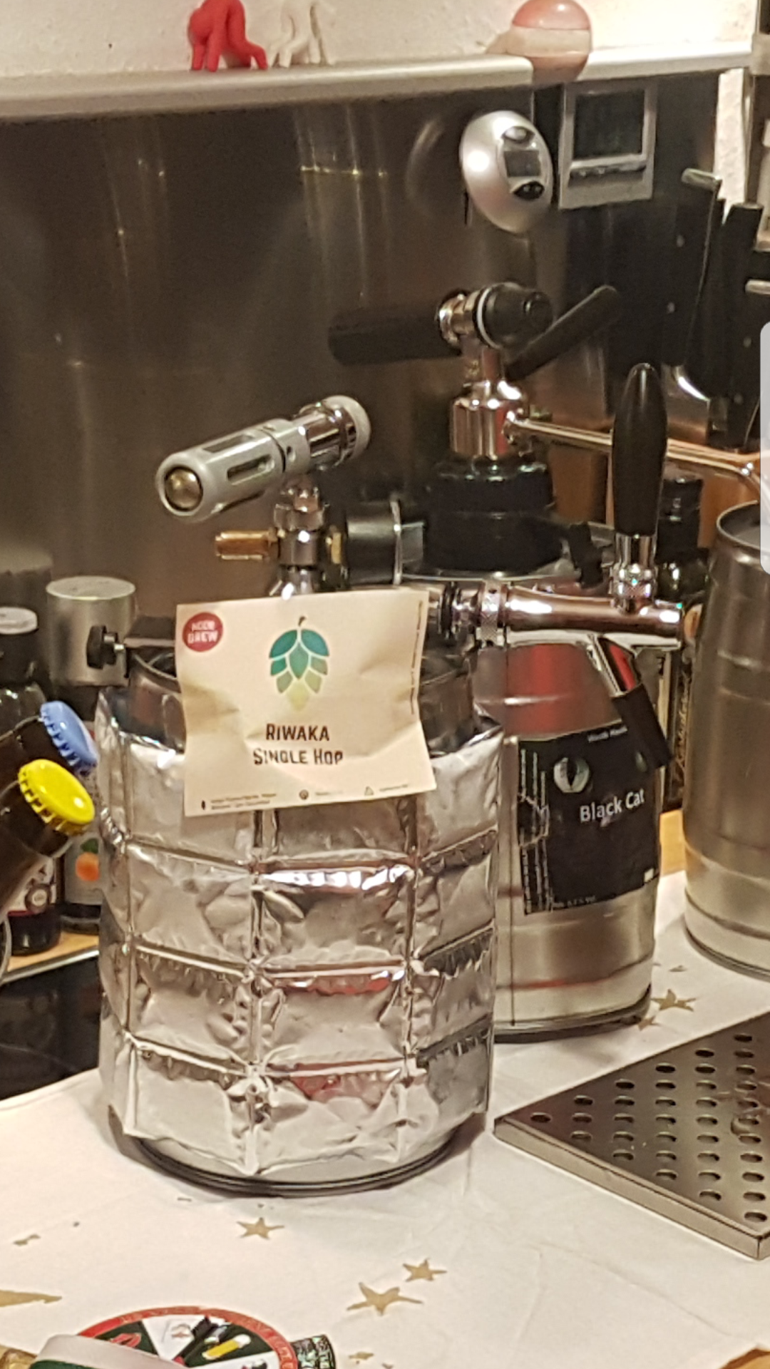 Zum Zapfen: Hatte zuerst den PartyStar (im ersten Bild unten im Hintergrund zu sehen), den ich aber nur noch als Reserve benutze, wenn ich mehrere Fässchen anschlage. Der macht mir zu viel Schaum, wenn die Bedingungen von Kühlung und Ruhezeit beim Fässchen nicht ganz ideal sind. Ansonsten nutze ich den das Hellmann Zapfbesteck mit Kompensatorhahn (im ersten Bild im Vordergrund) mit Kühlmanschette oder die Klarstein Zapfanlage mit aktiver Kühlung. Die aber auch umgebaut mit Kompensatorhahn. Siehe dazu meinen Umbau unter