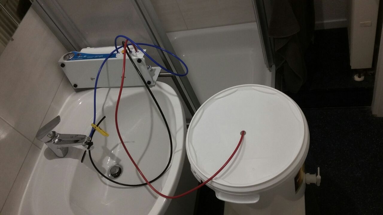 Hier die kleine Osmose-Anlage. Das Osmosewasser wird wieder mit normalem Leitungswasser gemischt.