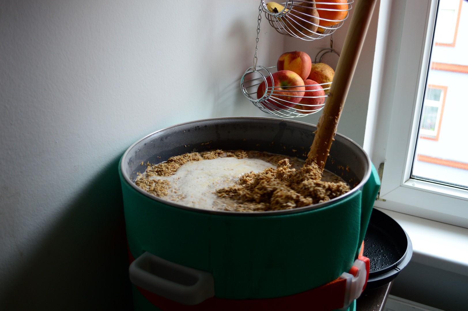 So sieht meine Läutervorrichtung aus. Das modische Handtuch ersparte leider nicht das gründliche Bodenwischen am Ende...