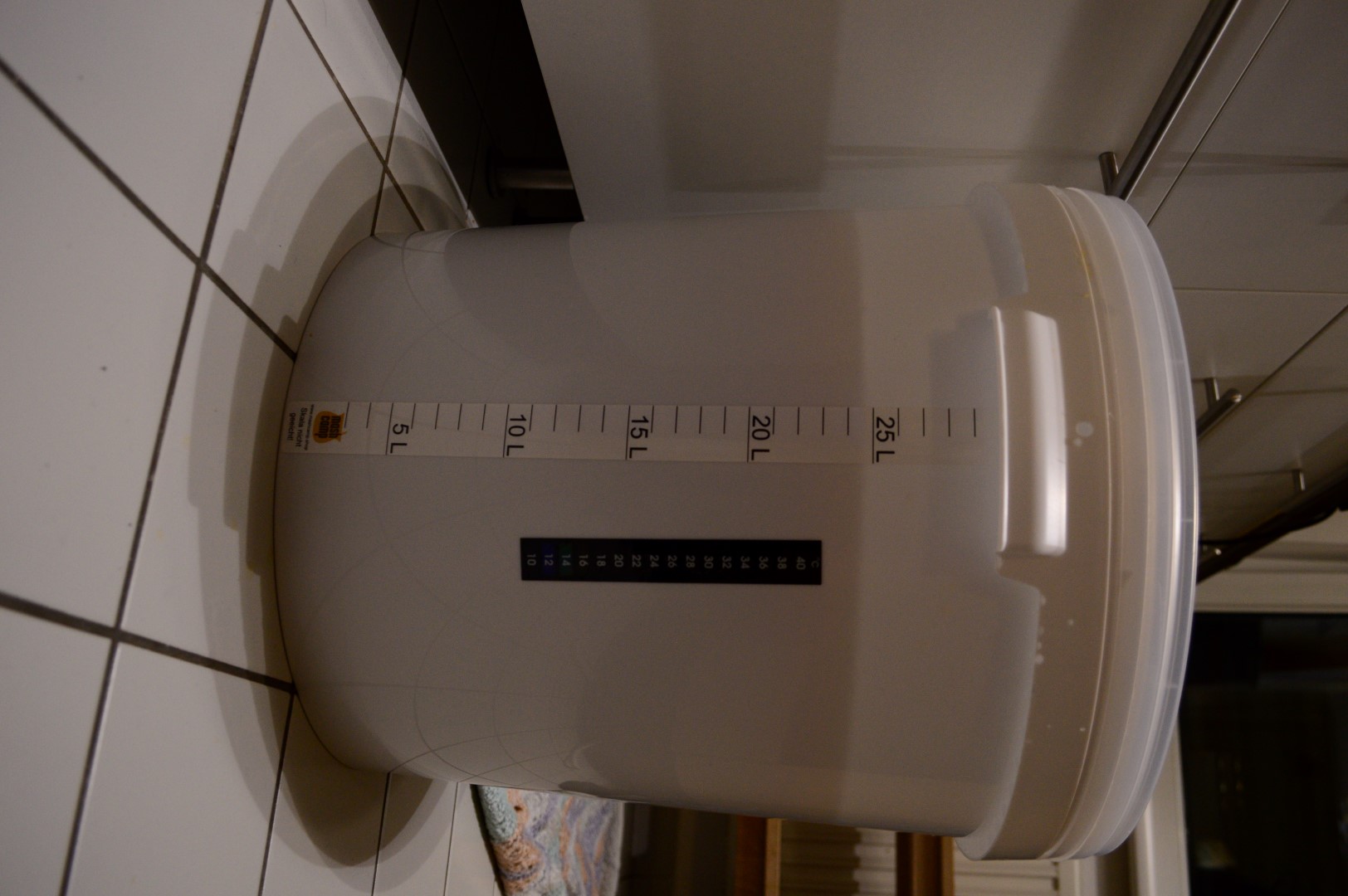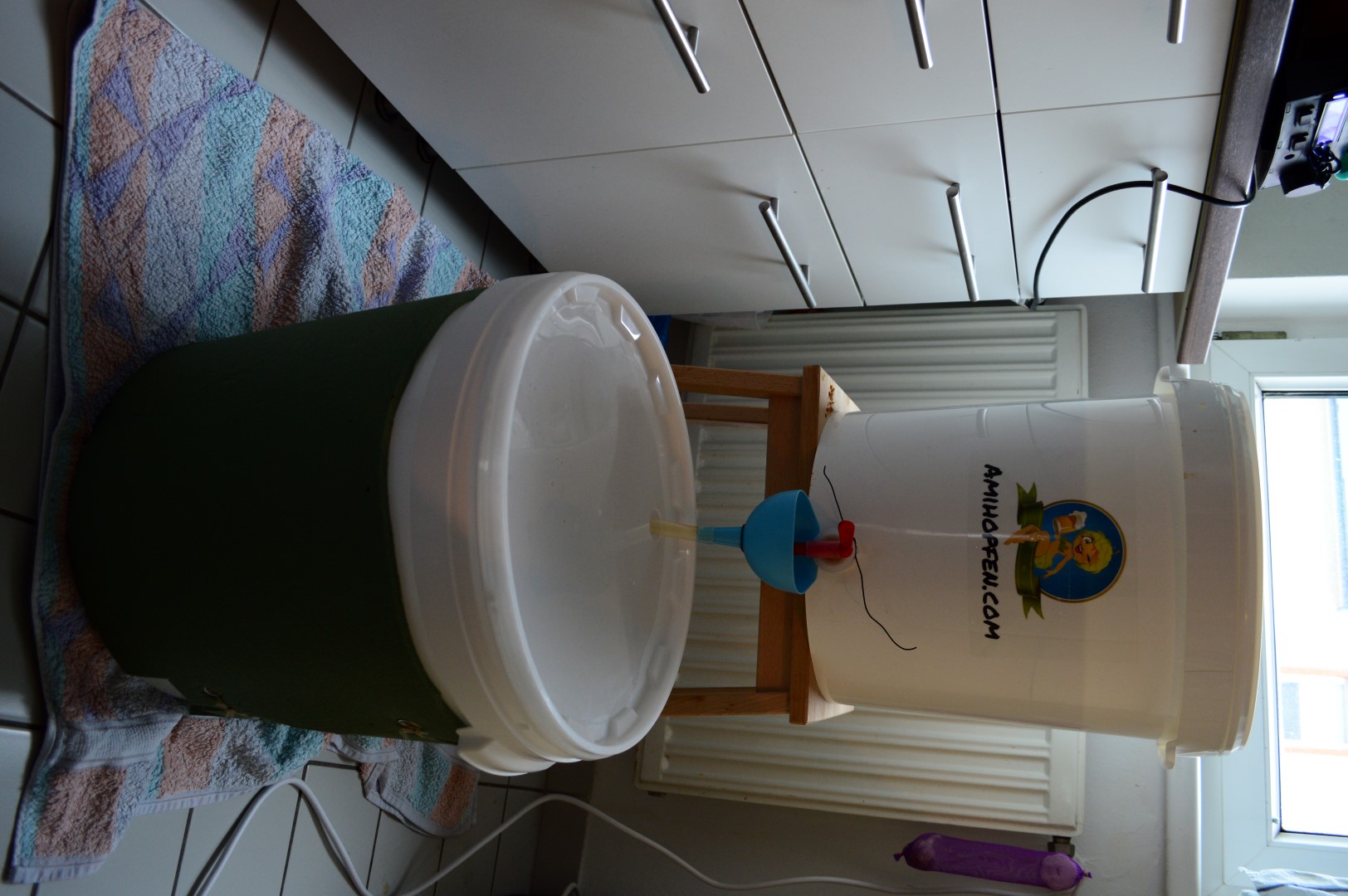 Nach ~1 Stunde kühlen auf die Anstelltemperatur der UG-Hefe war etwas zu viel im Eimer, also nochmal 3l entnommen, die gären(hoffentlich) mit geernteter OG-Hefe bei Raumtemperatur.
