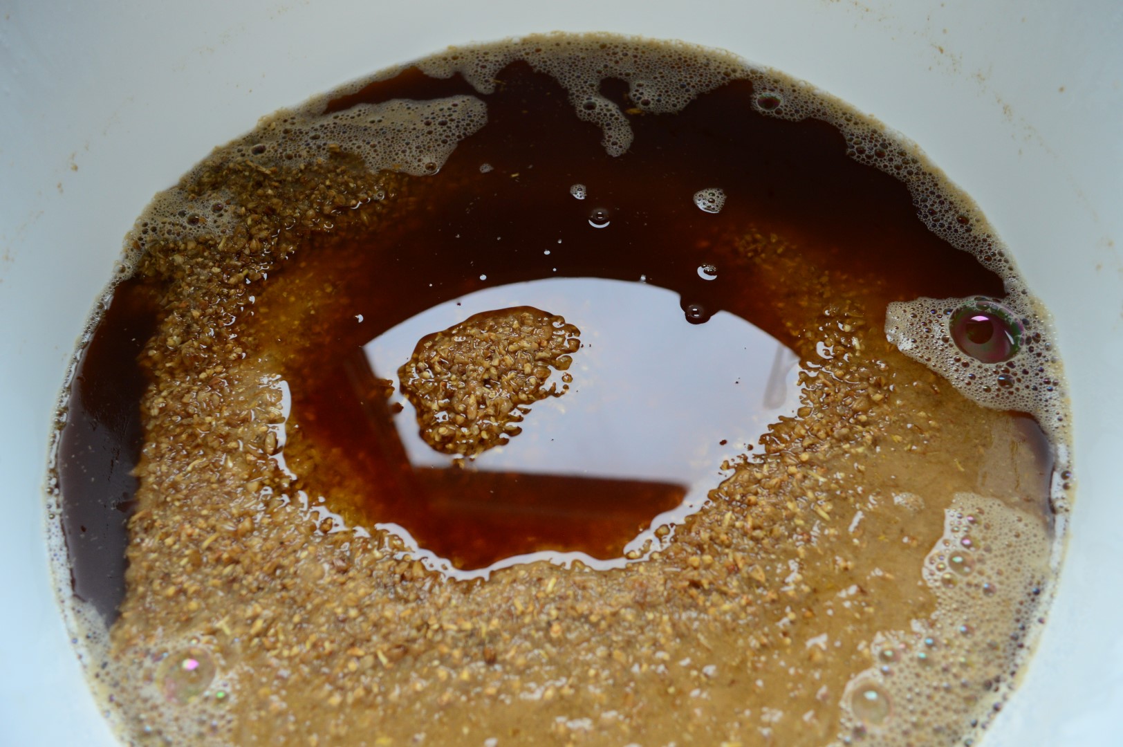 Nachdem die dickflüssige Maische händisch in den Läutereimer befördert wurde noch schnell eine Läuterrast halten