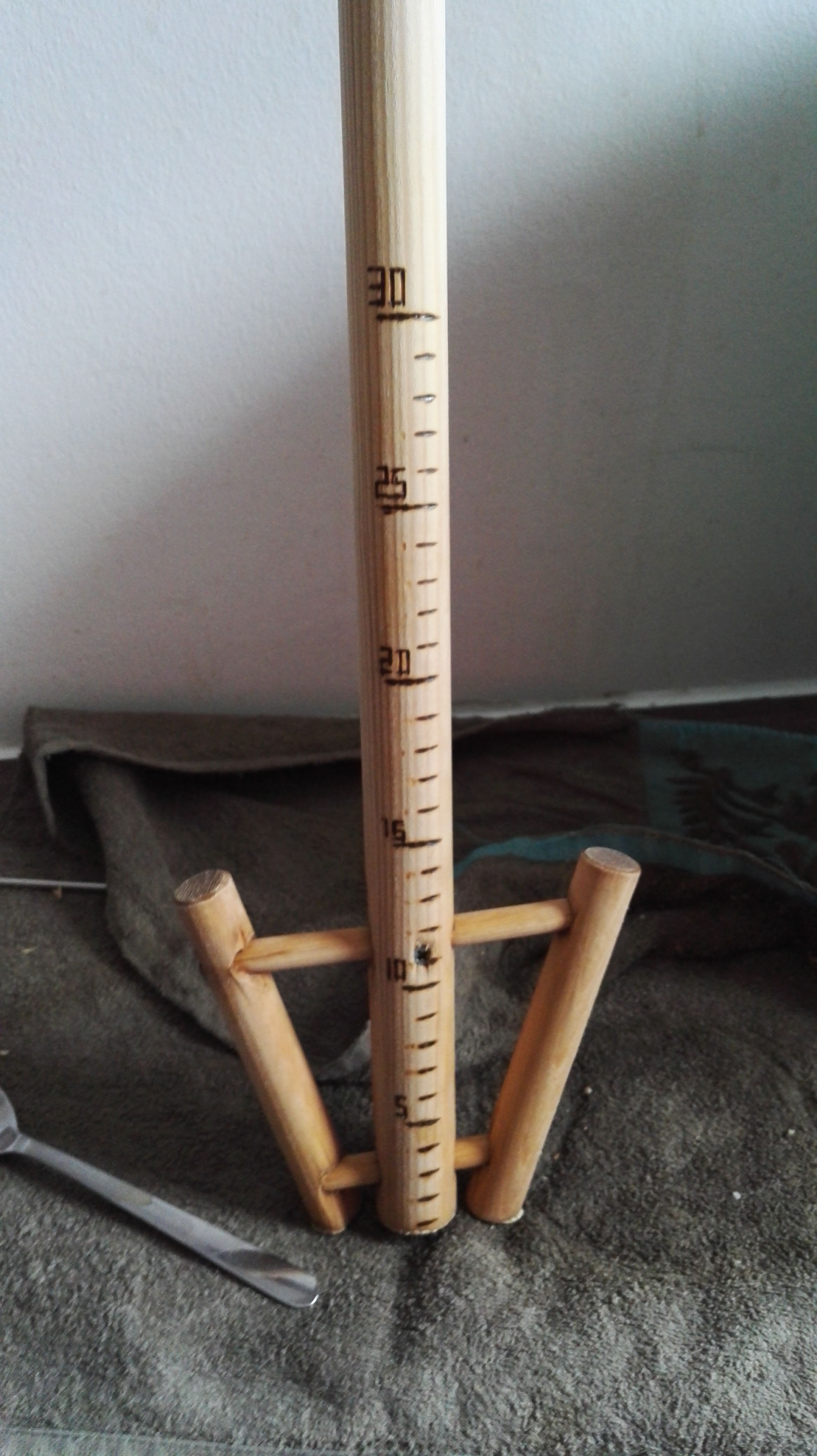 Während des Wartens auf das Läuterergebnis kamen wir auf die Idee den Weck auszulitern und das Maischepaddel zum Messstab zu erweitern. Der Lötkolben machte das ganz brav.