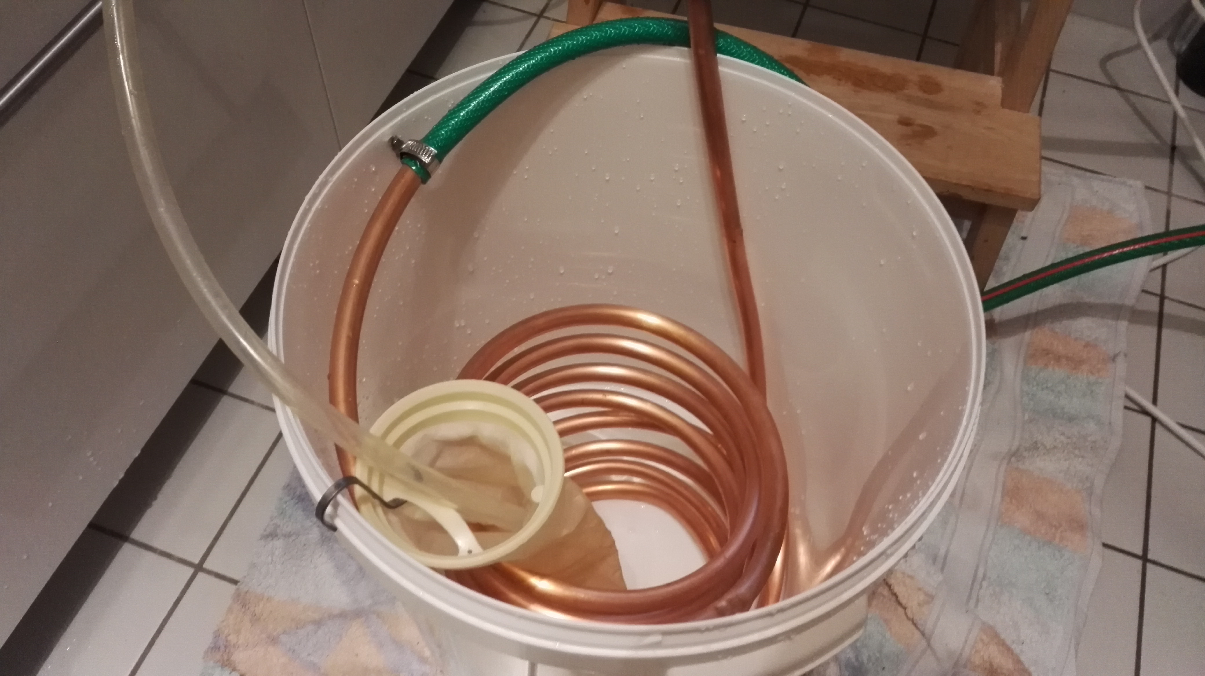 Kühlspirale zum Schluss mitgekocht und in den Gäreimer verfrachtet