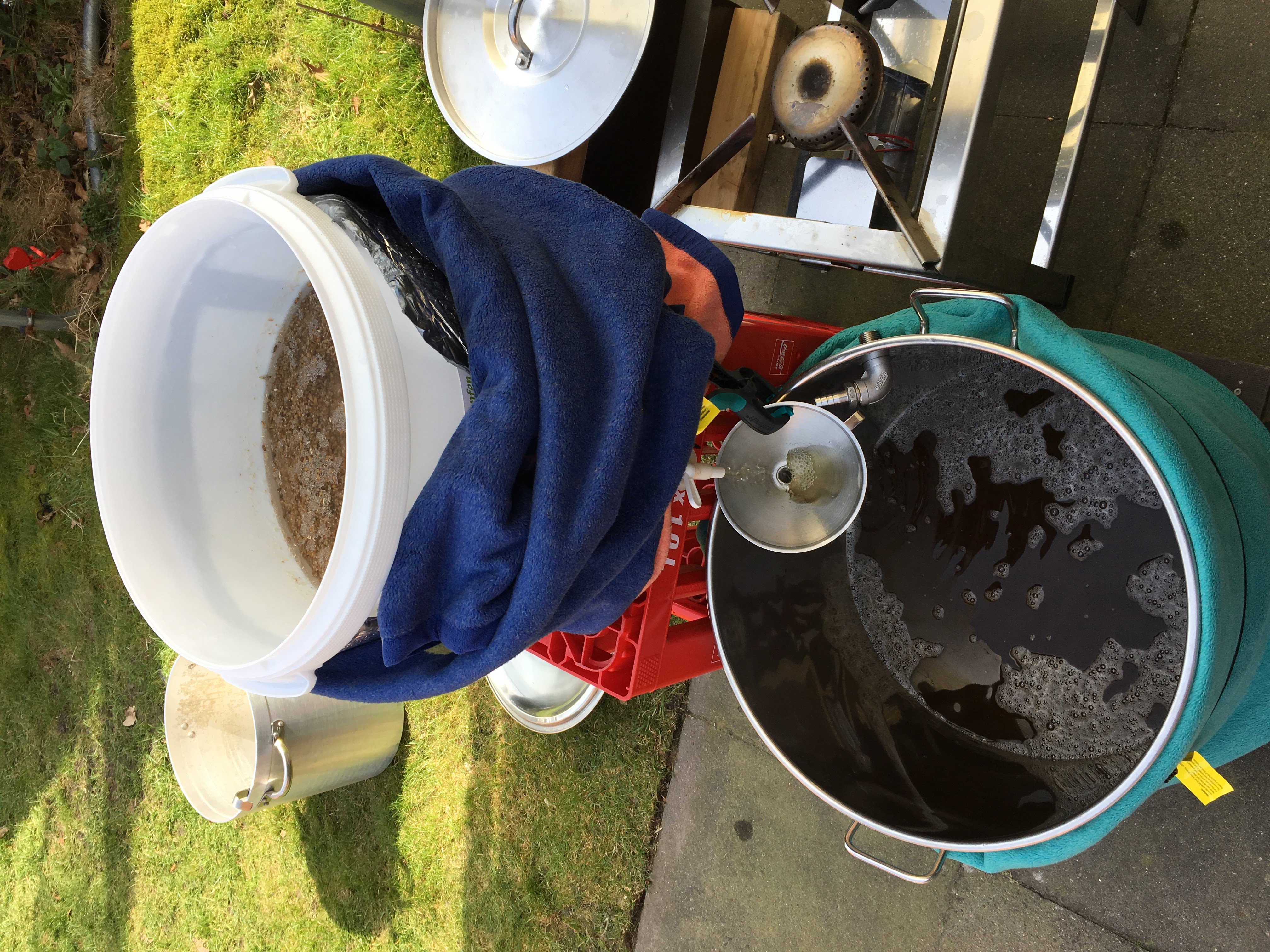 Abläutern, den Nachguss gebe ich mit einer Schöpfkelle drauf