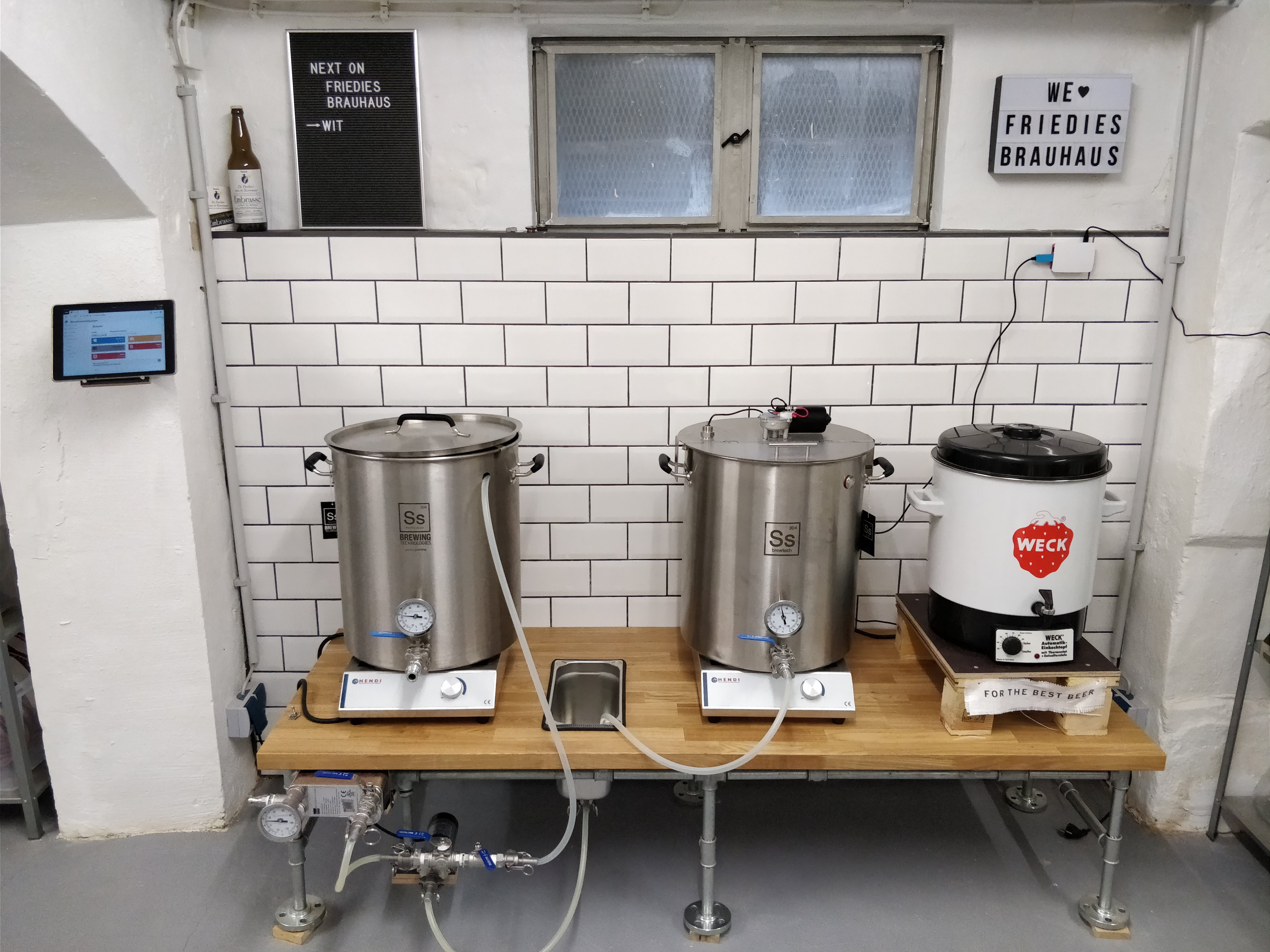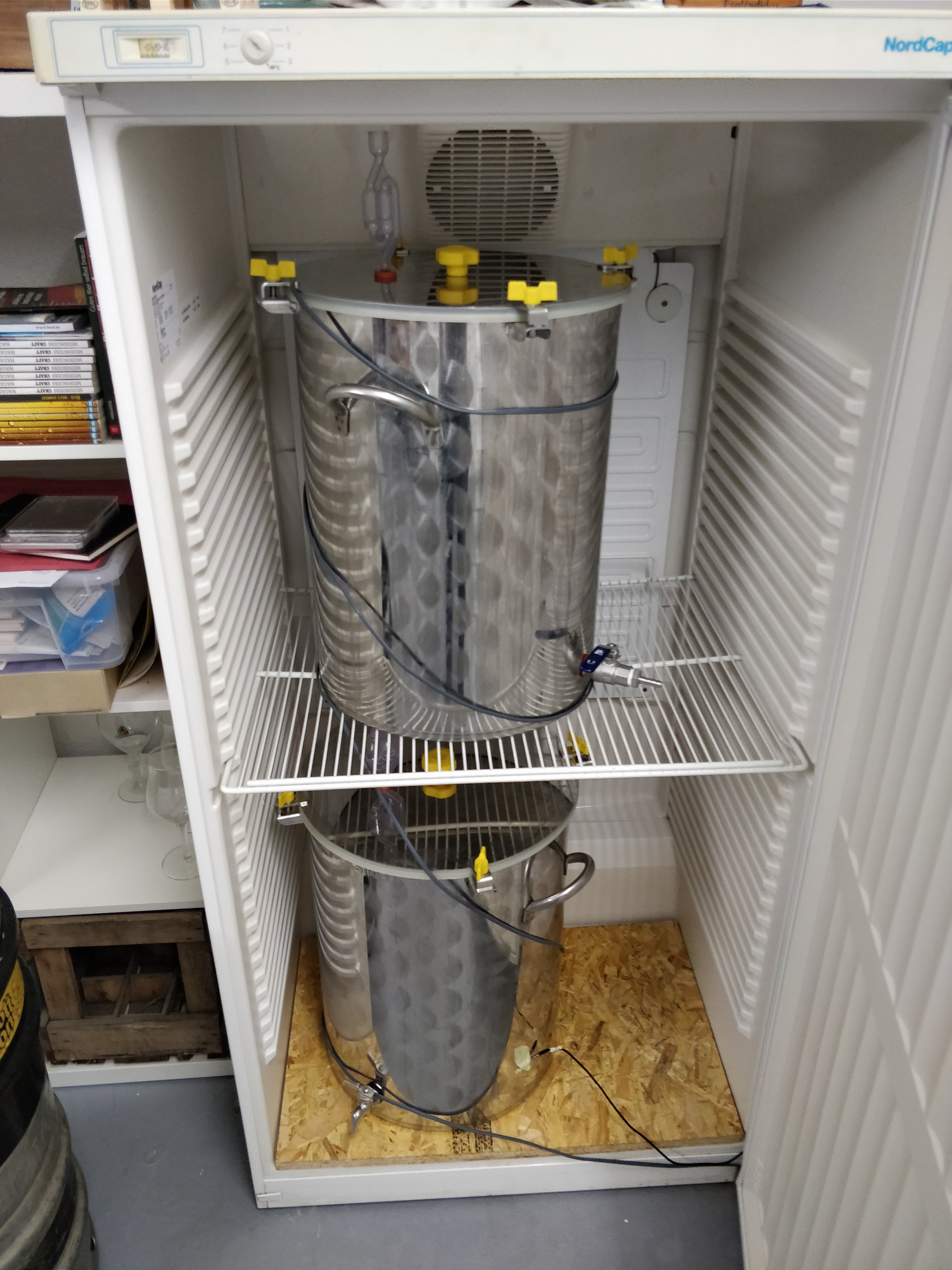 Setup: 3,5kw Caso-Induktionsplatte, 36l Brewferm-Topf, 38l Schengler-Thermoport mit Läuterhexe, Kühlspirale, Themperaturgesteuerte Gärkammer.