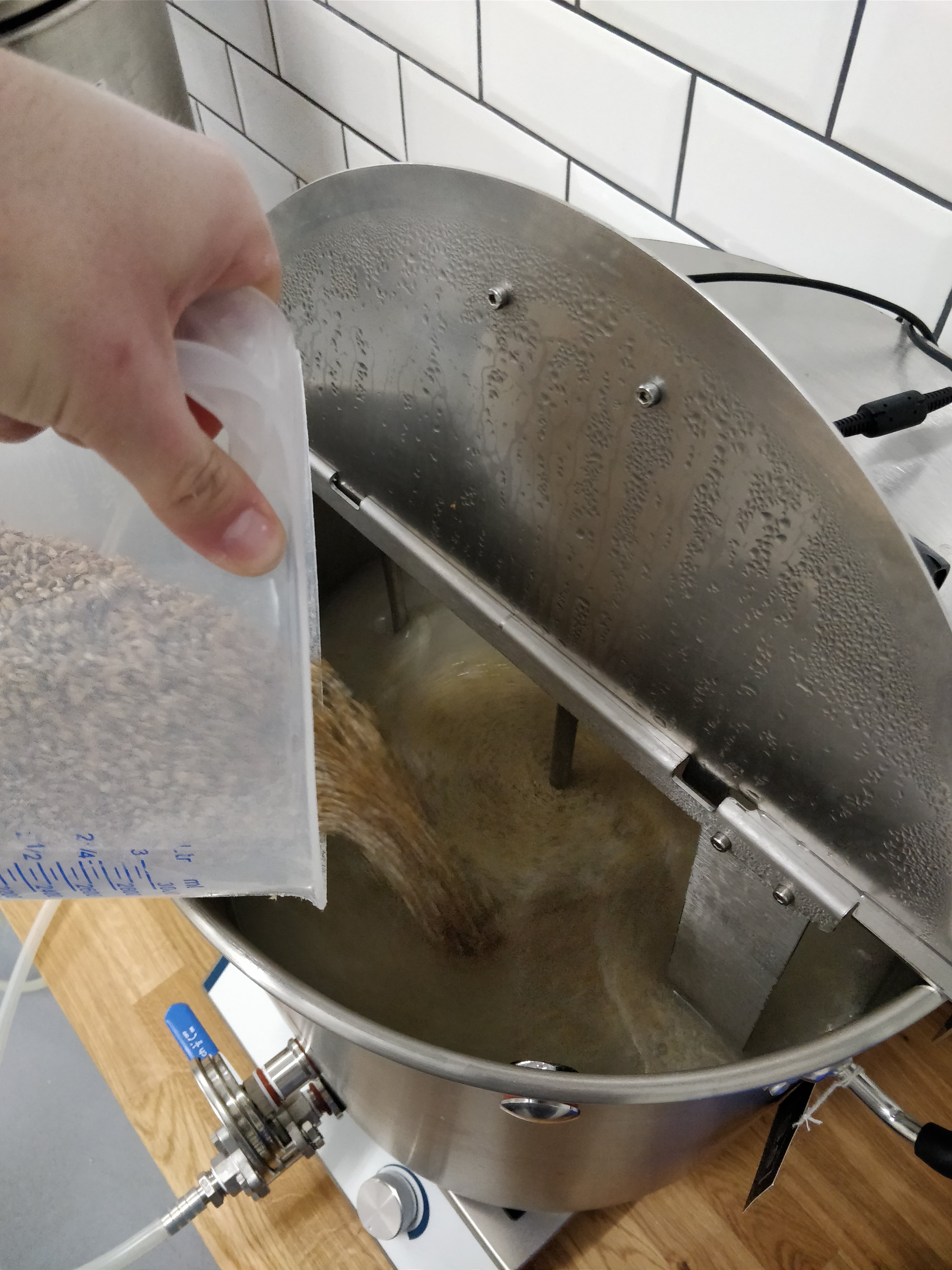 Die Schüttung bestand aus 55% Pilsener Malz, 20% Weizenmalz, 20% Weichweizengrieß, 5% Haferflocken.