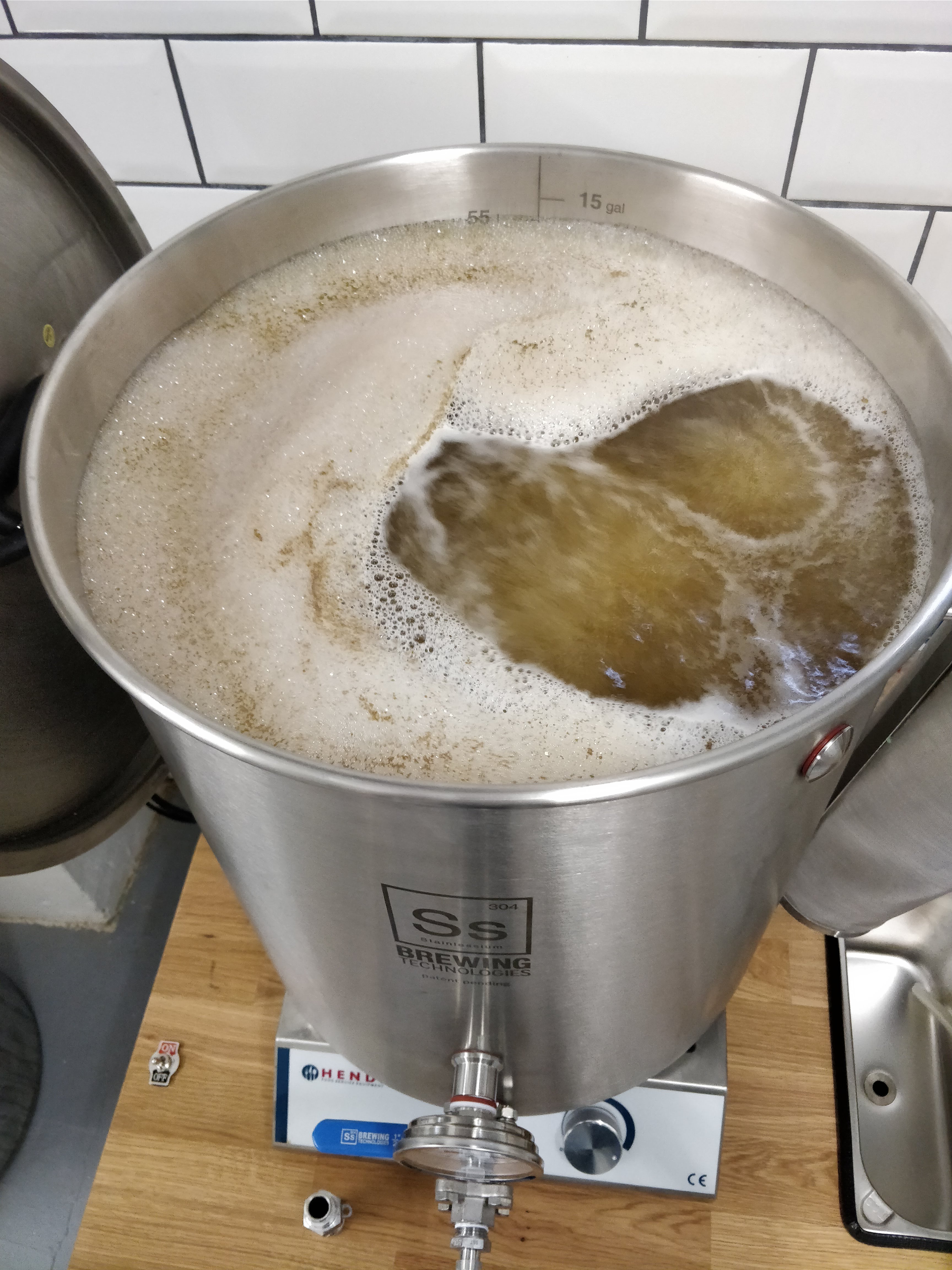 Das Maischen übernimmt das Braukontrollsystem von Zabobier. Der Raspberry steuert mein Rührwerk und die Hendi per Funksteckdose. Gesteuert wird das ganze über mein iPad.
