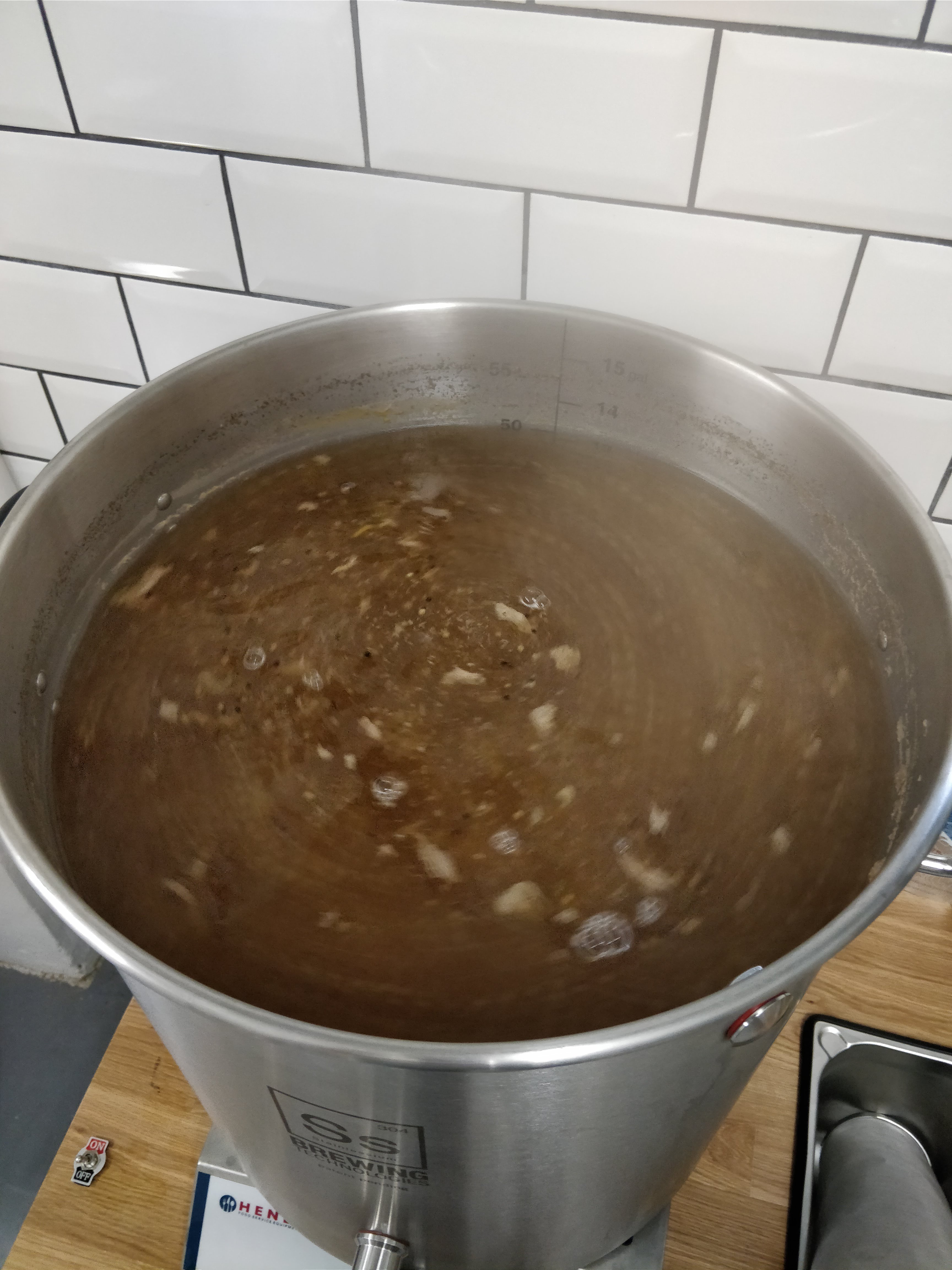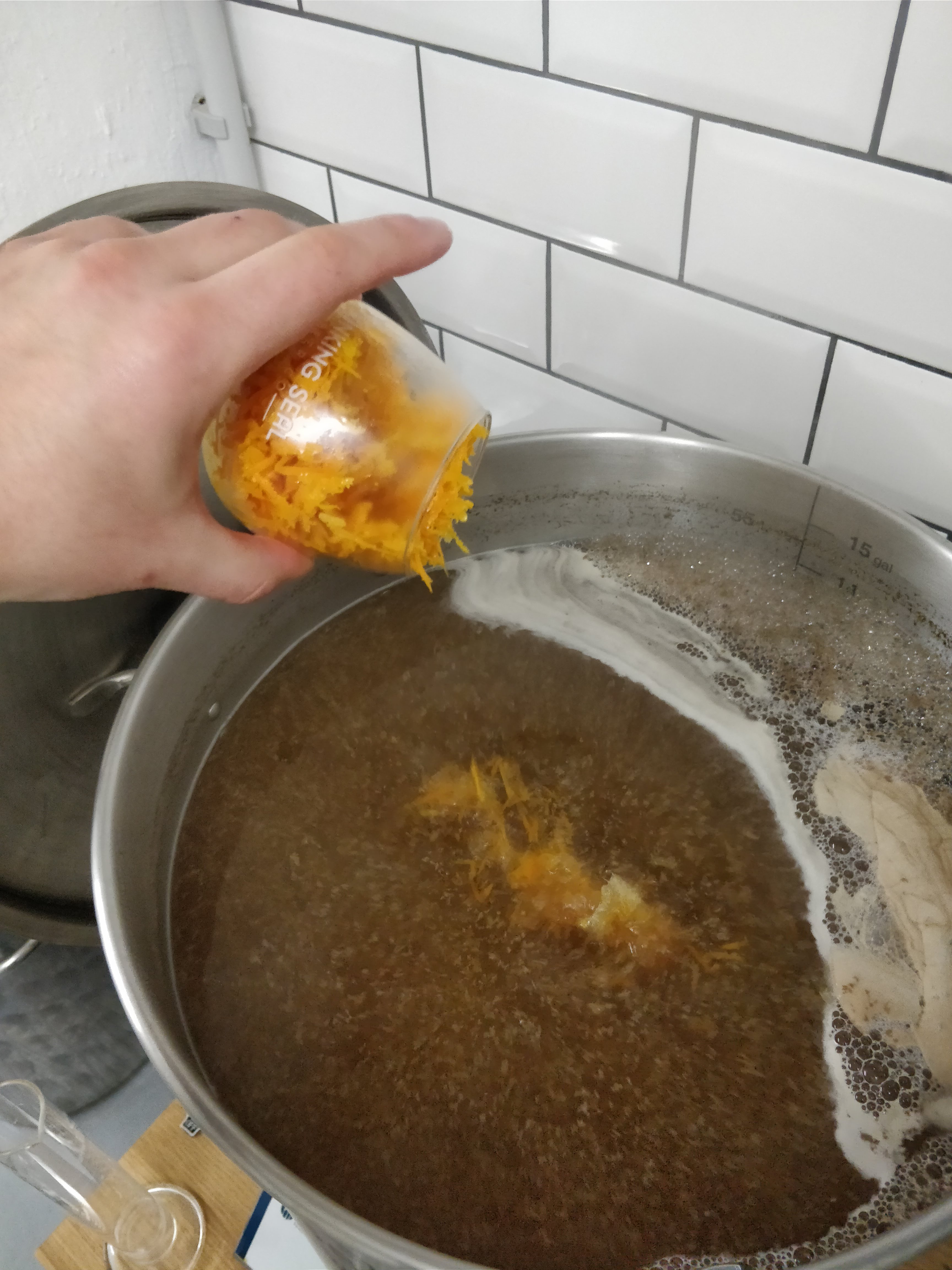 Beim Kochen kam Herkules in die Vorderwürze. 10 Minuten vor Ende kamen Orangen- und Zitronenschalen und 5 Minuten vor Ende Paradieskörner und Koriandersamen hinzu.