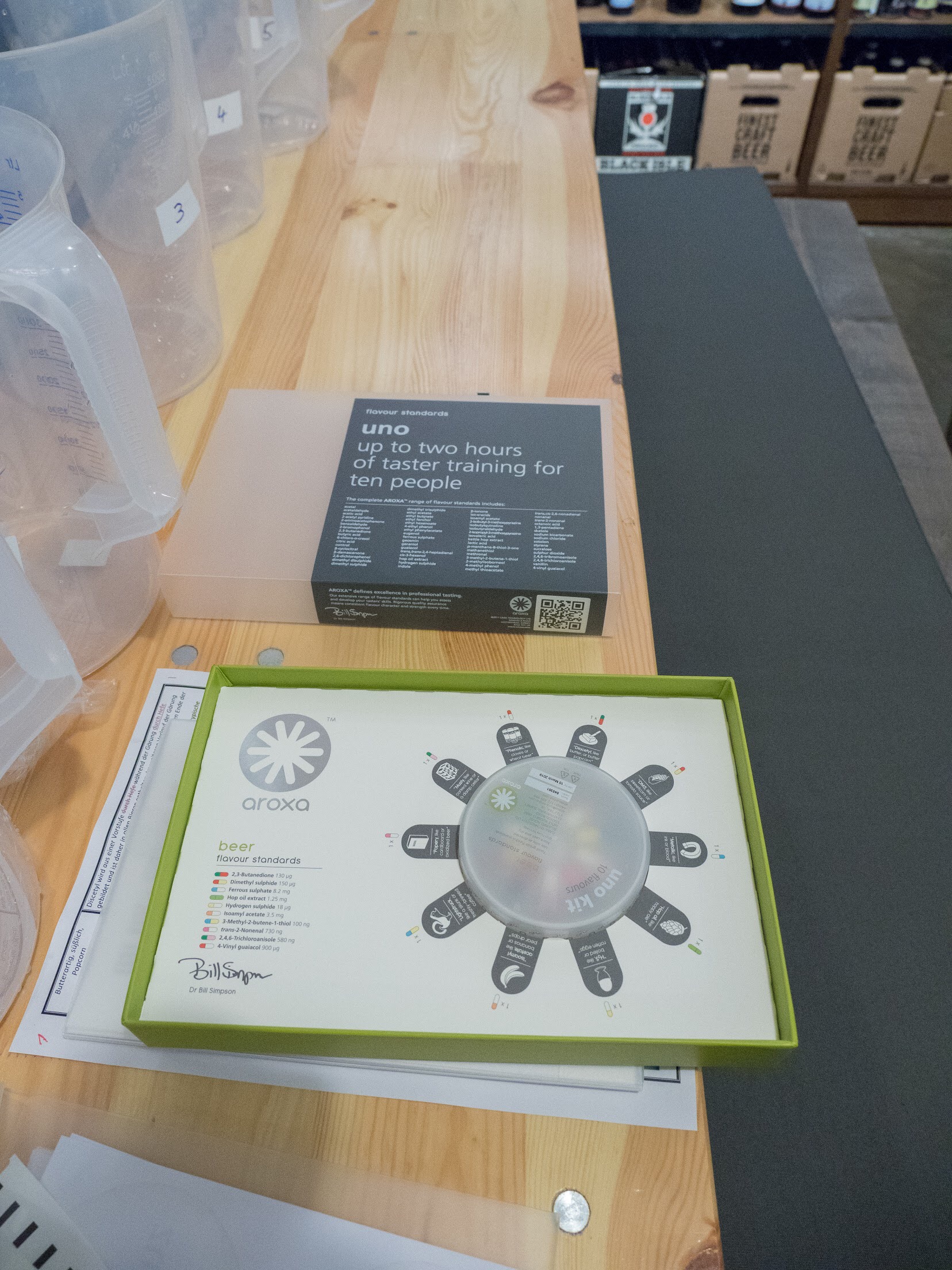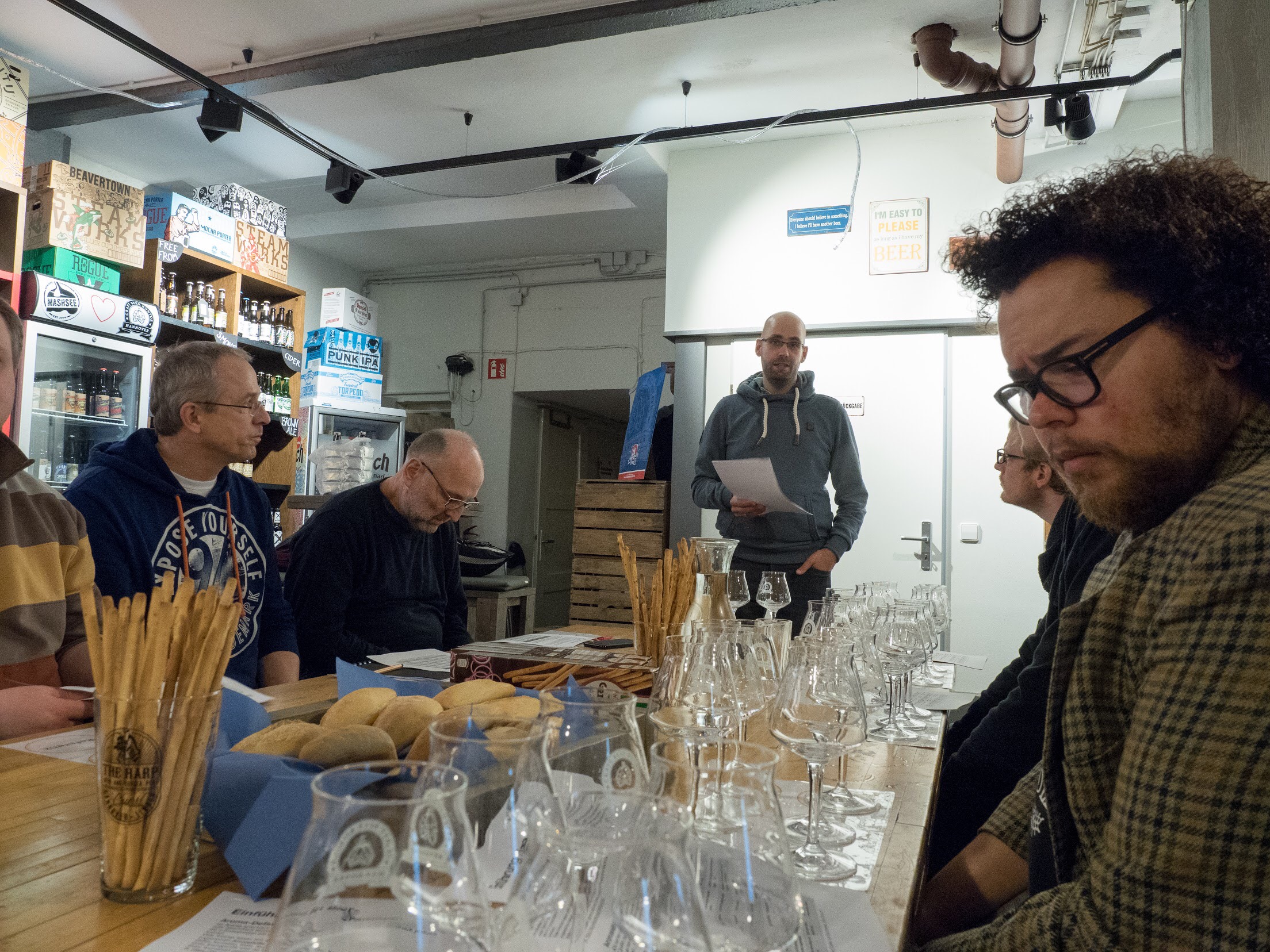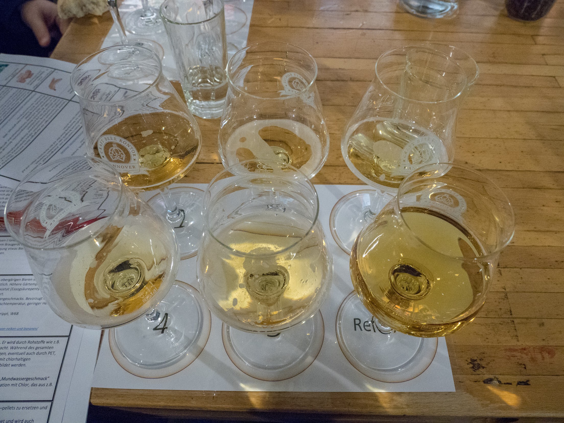 Nachdem Olli einen kleinen Vortrag über Aromen im Bier und ihre Herkunft gehalten hat ging es los.