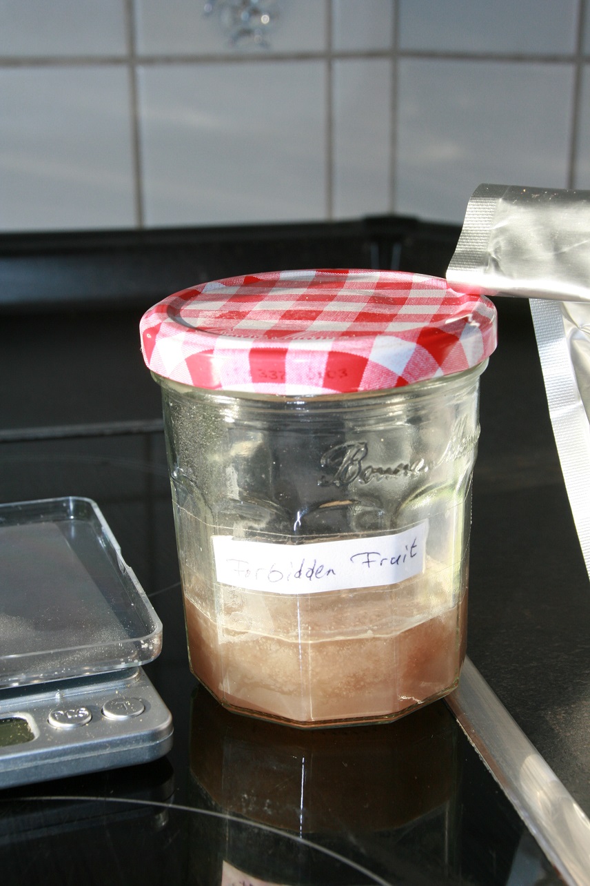 Übrigens gärt das Bier nun schön vor sich hin...die Forbidden Fruit ist sehr gut angekommen und knabbert nun an der Würze...