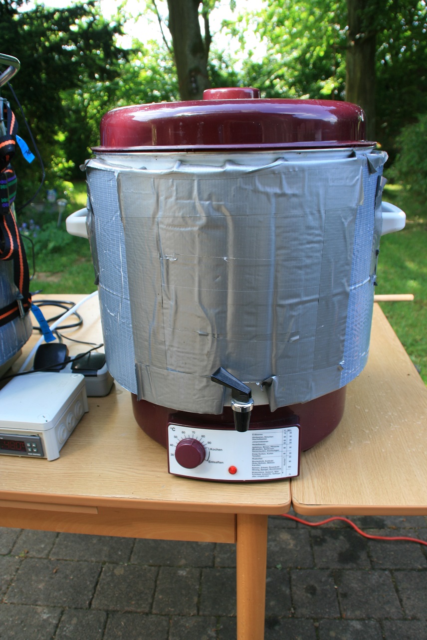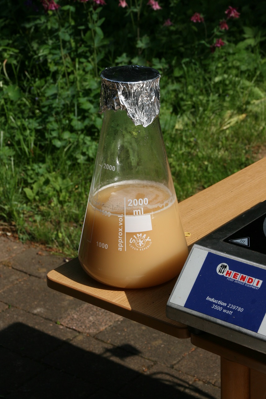 Schon während des Läuterns wird vorgeheizt, so dass es bis zum Kochen nicht so lange dauert. Genug Power bringen die Hendi und der Tauchsieder jedenfalls: