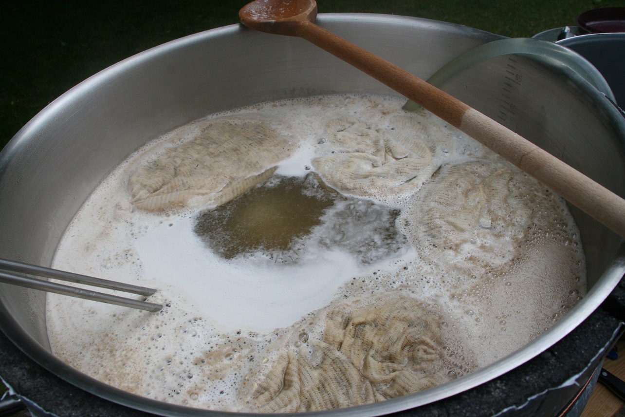 Unterdessen wurde der Maischekessel gesäubert und die Hopfengaben wurden vorgelegt: