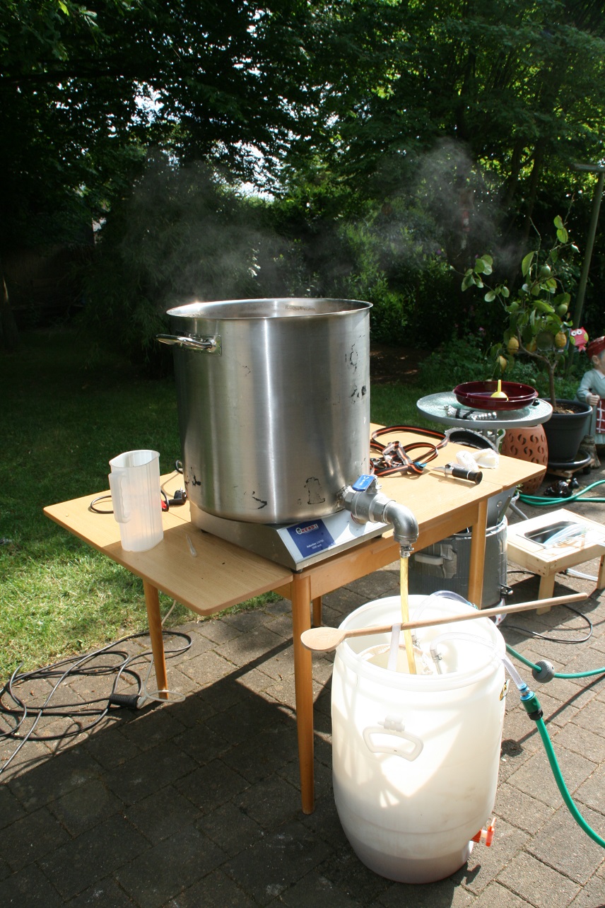 Schon während des Läuterns wird vorgeheizt, so dass es bis zum Kochen nicht so lange dauert. Genug Power bringen die Hendi und der Tauchsieder jedenfalls:
