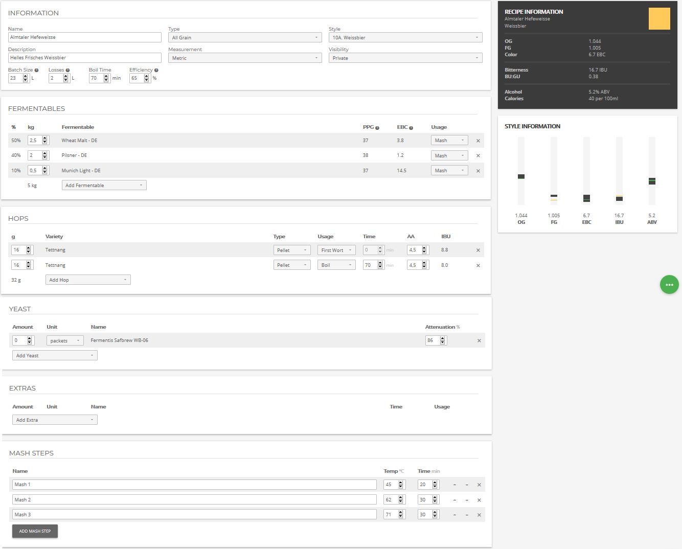 ich möchte meinen Grainfather mit einem leichten Rezept für Anfänger einweihen und zwar mit dem Almtaler Hefeweiße aus dem Einsteigerbuch von Hanghofer. Beim Übertragen in das Recipe-Tool http://brew.grainfather.com habe ich ein paar Probleme.