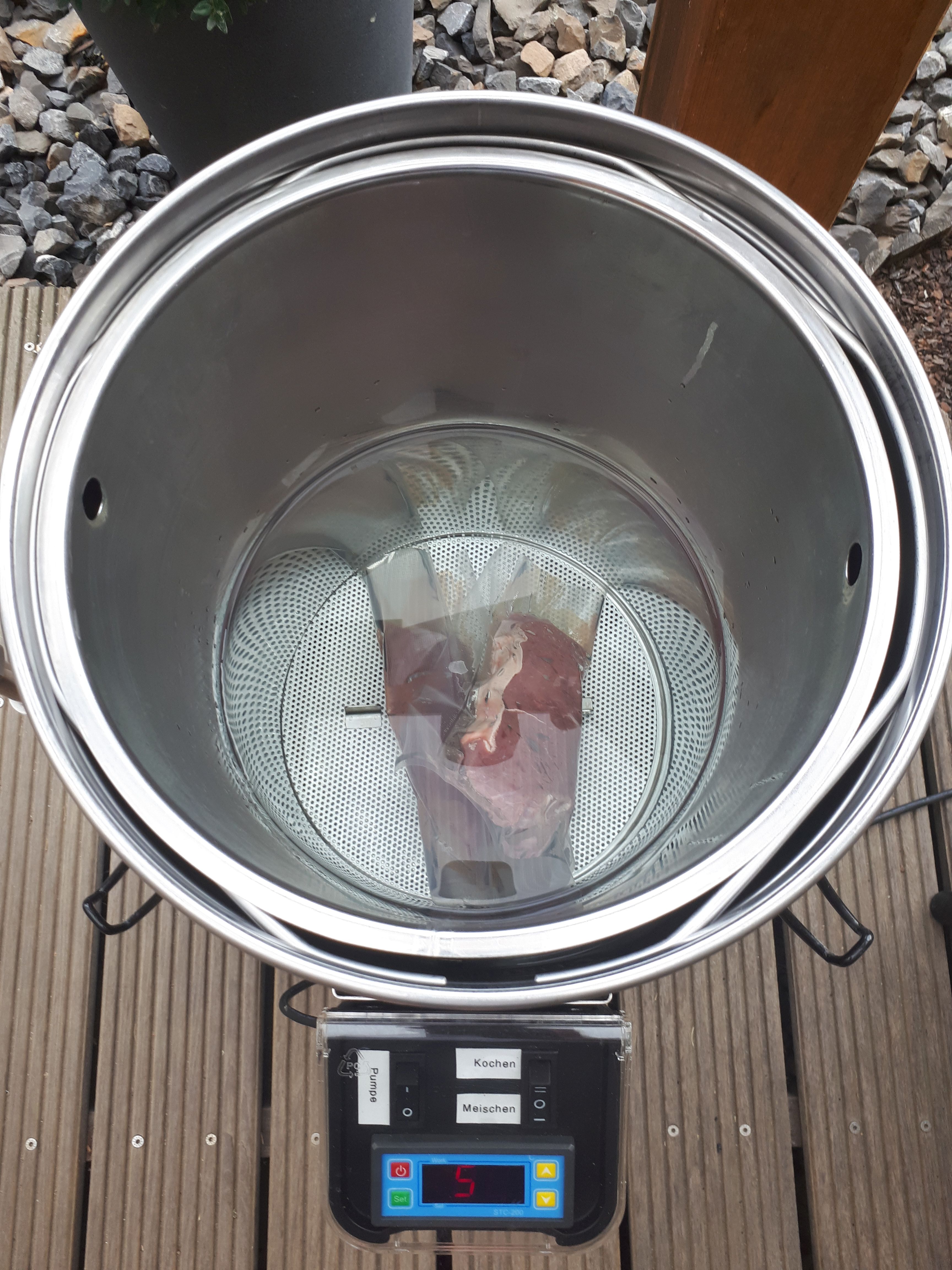 Mein erstes Sous Vide war auch in Maischkessel, dann habe ich auf ein Sous Vide-Gerät gewechselt.