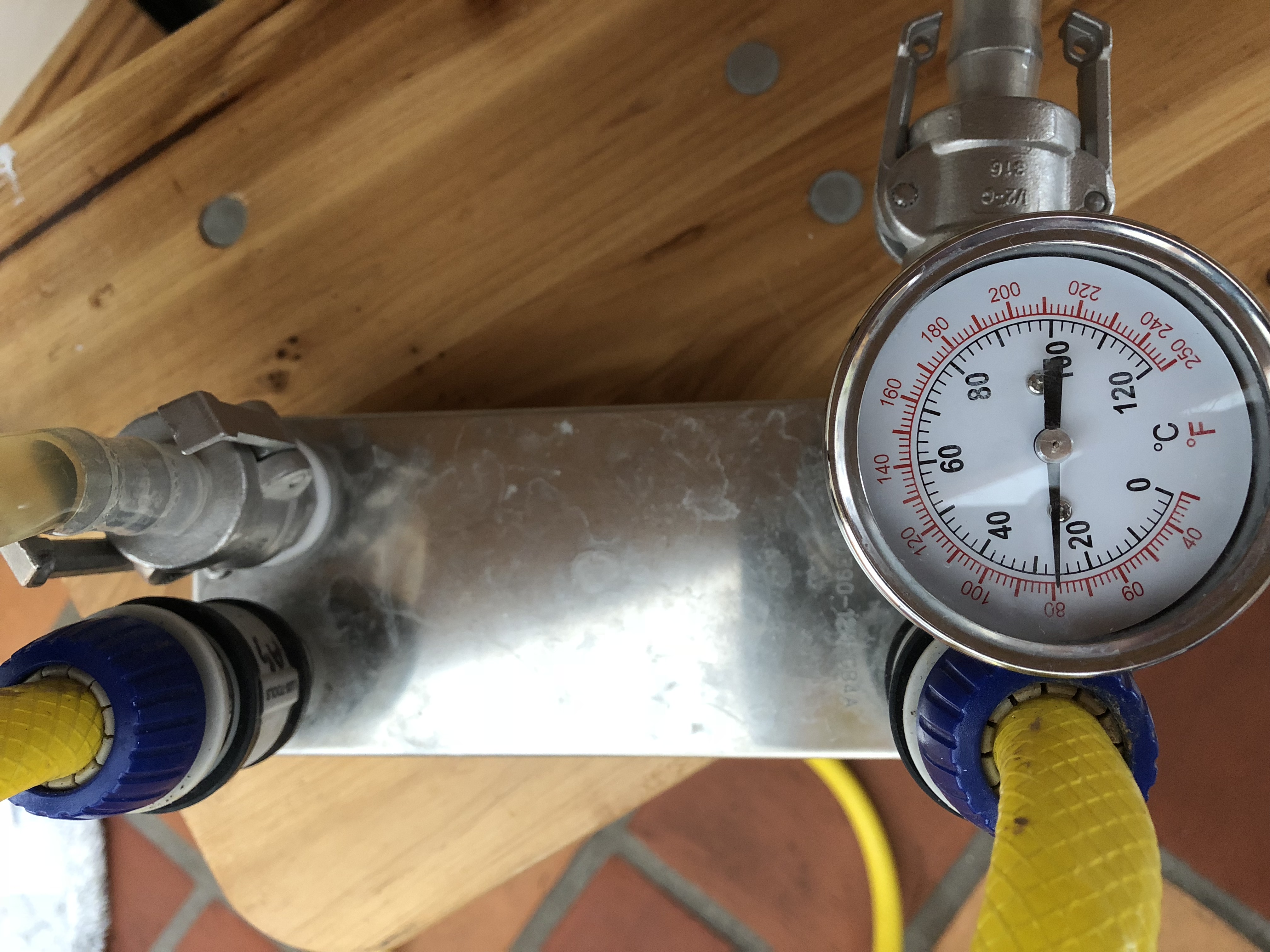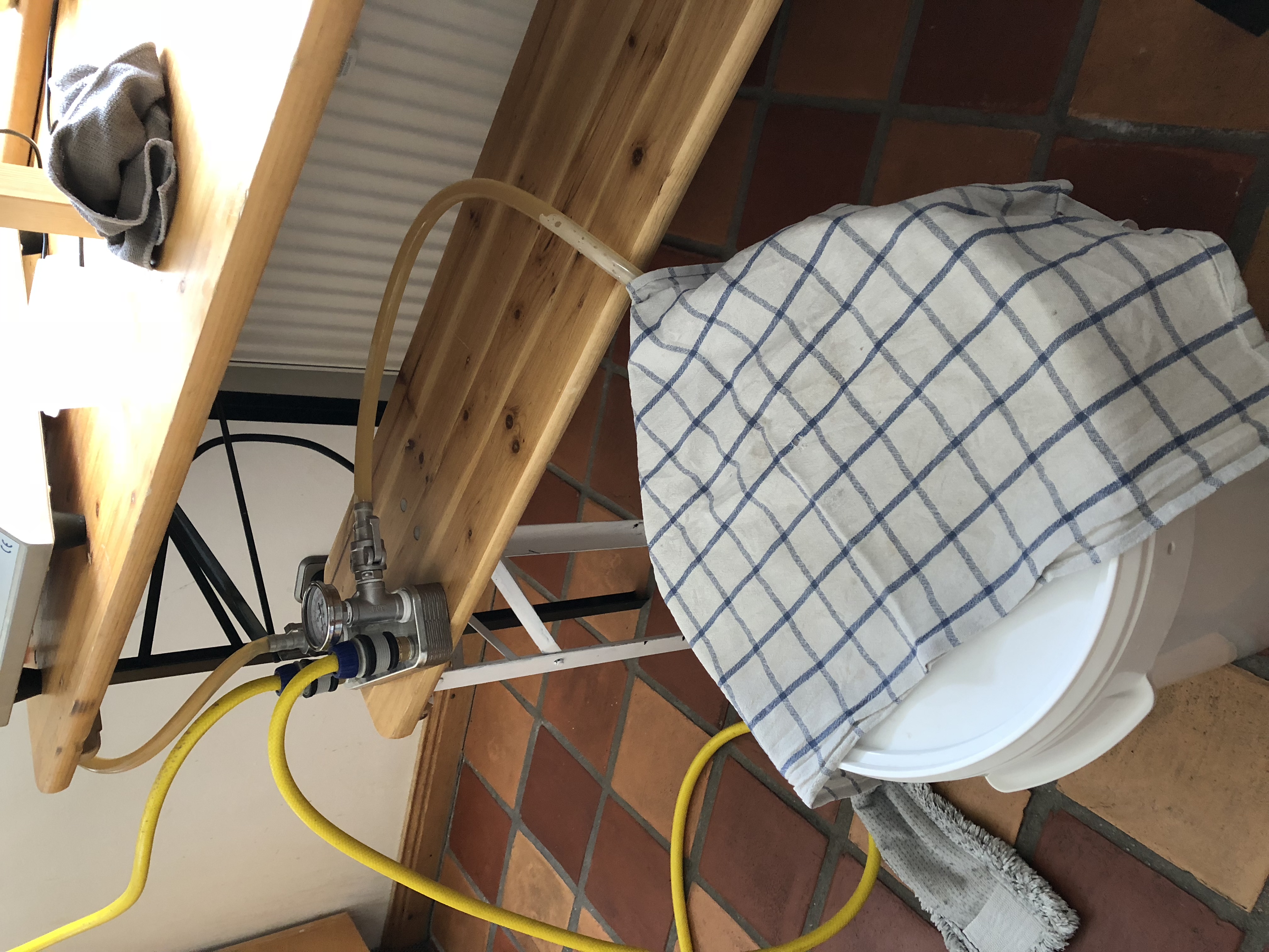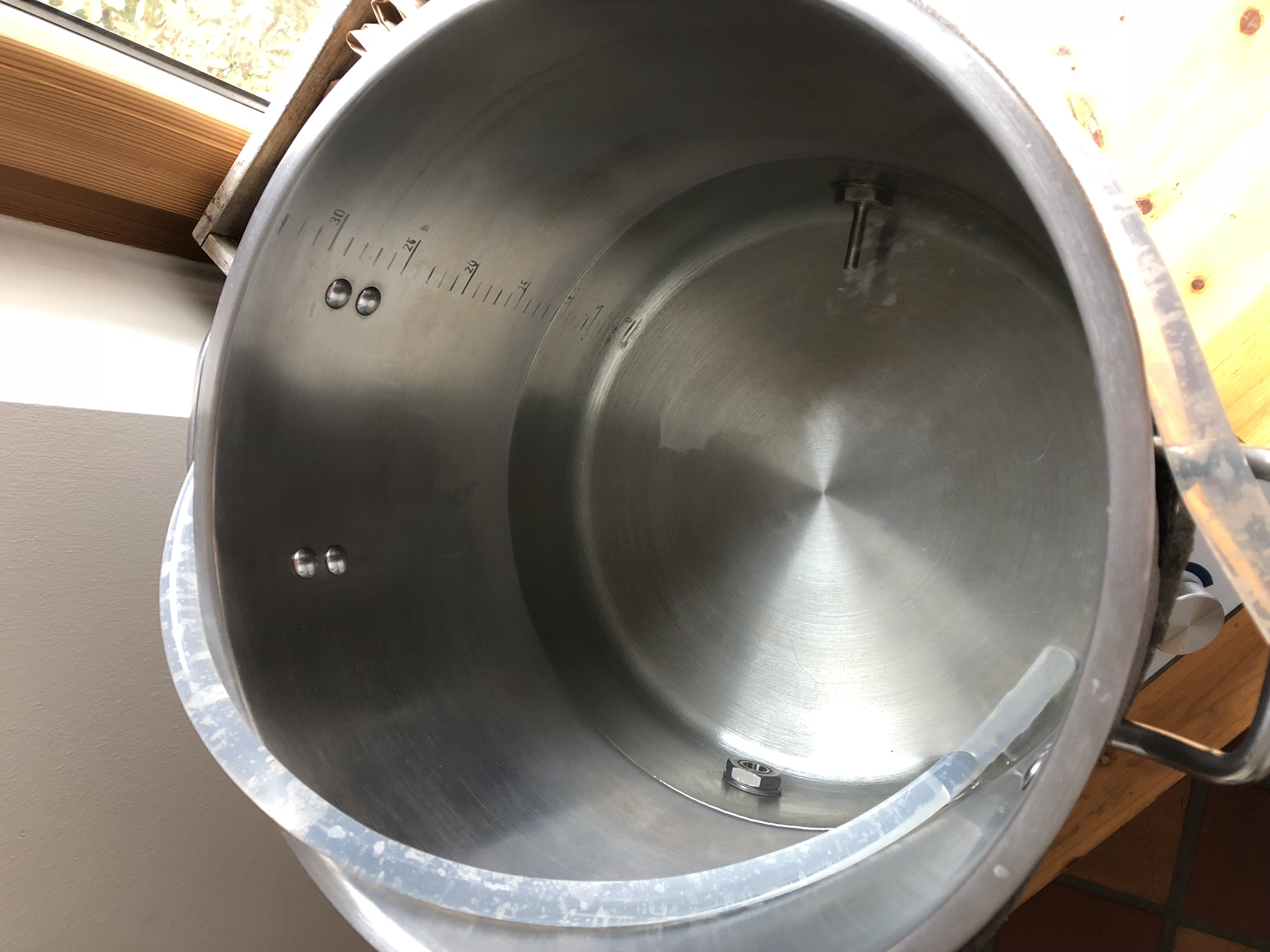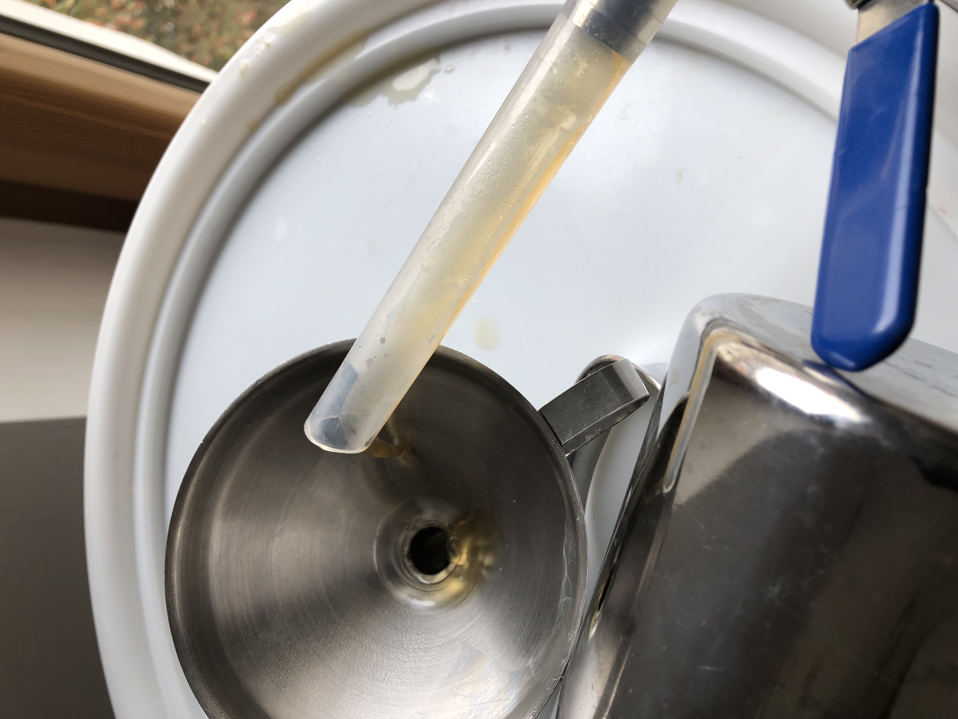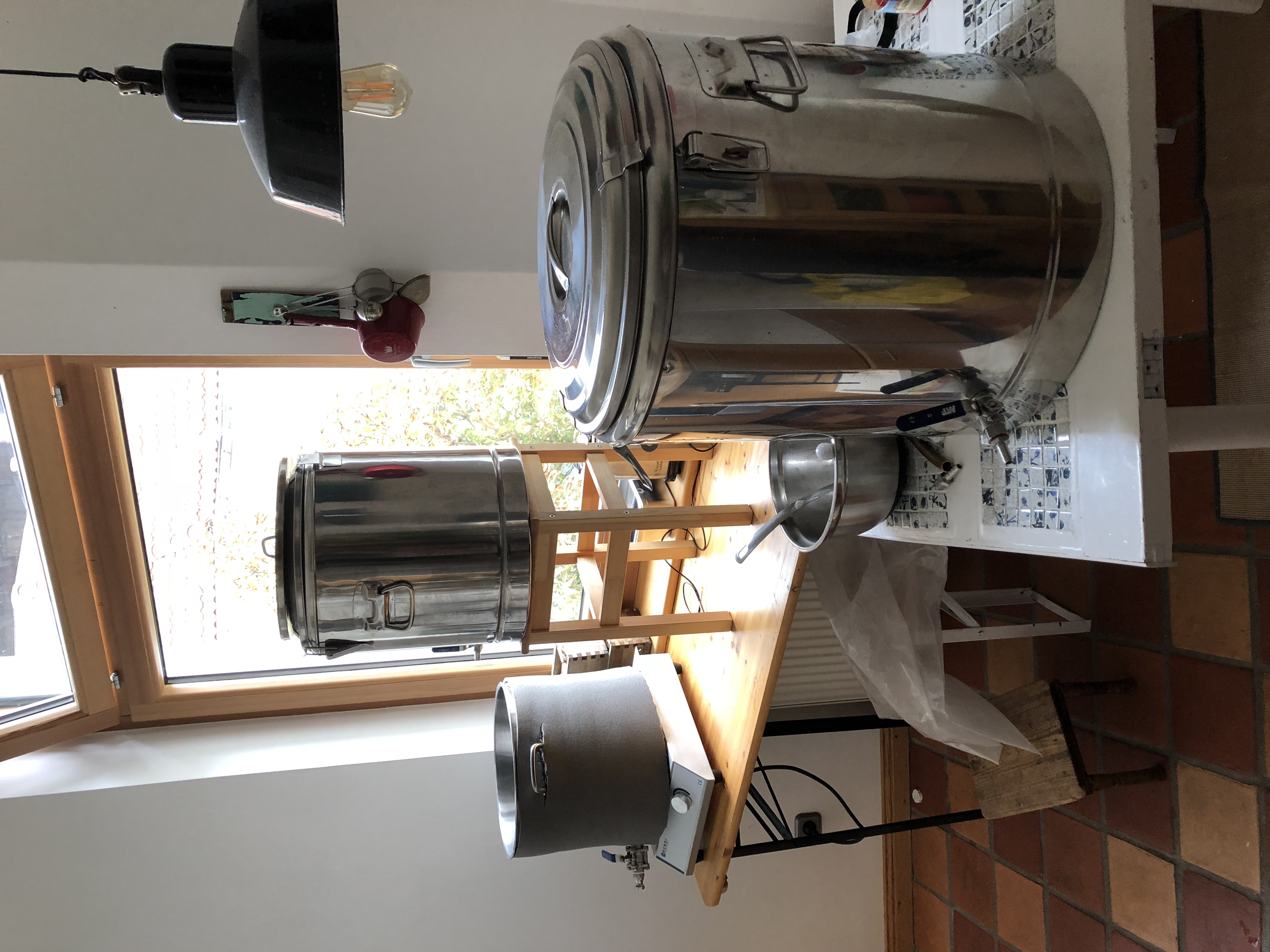 Der zweite Sud wurde dann in einen Eimer geläutert, so dass ich direkt nach dem Kühlen (+ putzen) des ersten Suds wieder aufheizen konnte.
