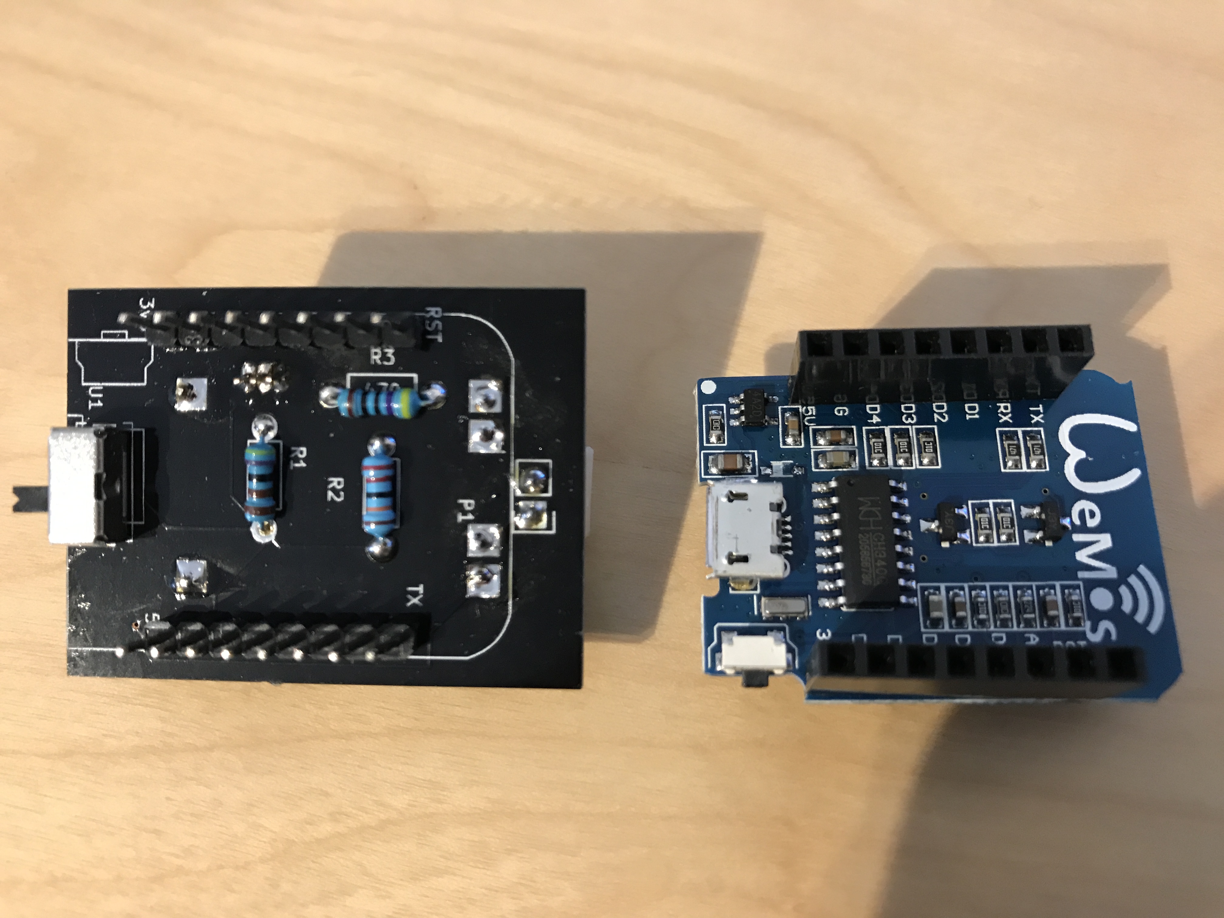 Sobald die Eingangsdiode vom Wemos heruntergelötet wurde funktioniert er nur noch an der Platine mit angeschlossenem (und geladenem) Akku.
